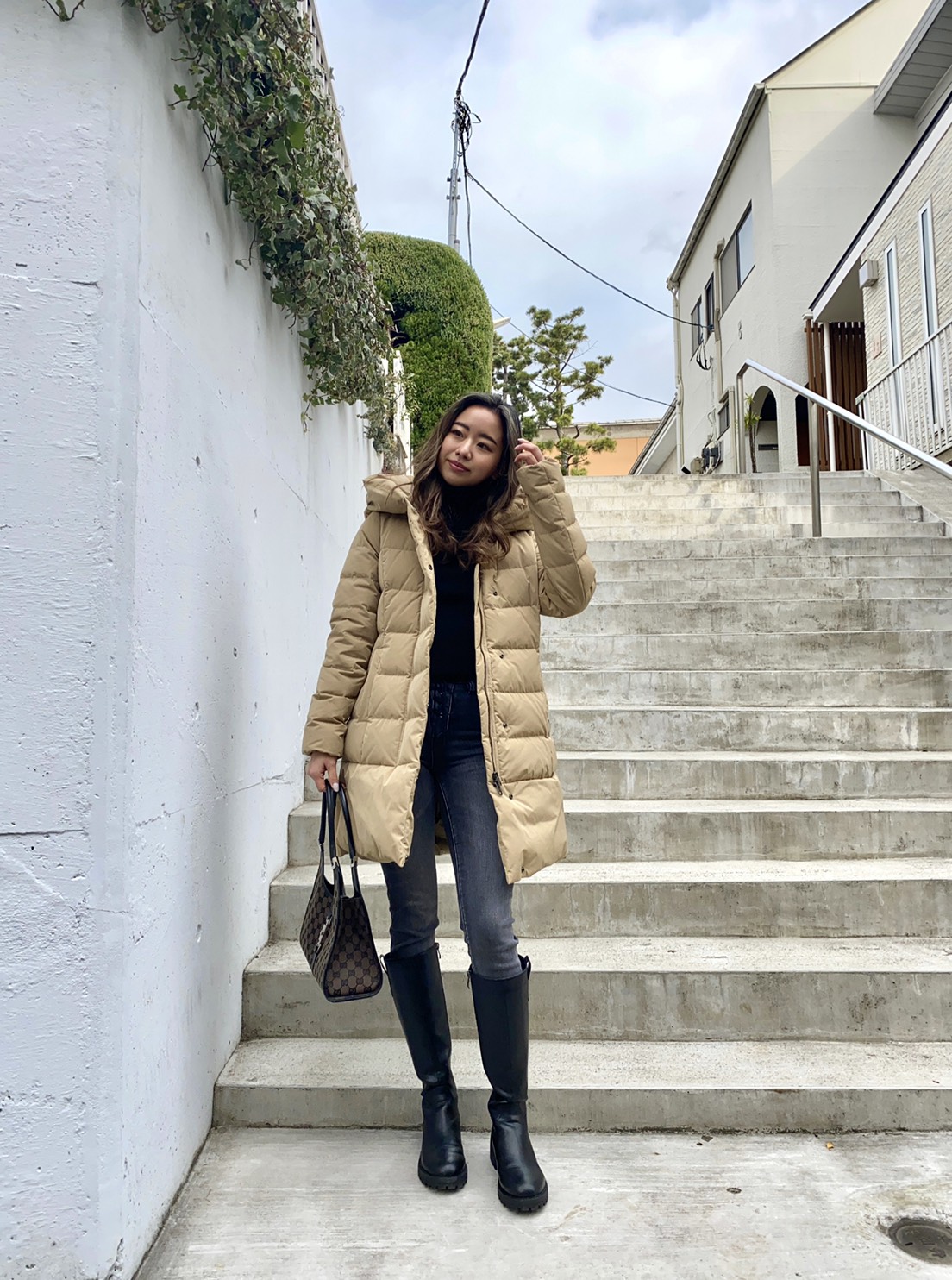 このダウンコートにロングブーツがものすごく相性抜群で、、、普段からパンツを履くことが多いのですが、このダウンとブーツの組み合わせのお陰でどこか大人っぽい、“品のある”コーディネートに仕上がりました。