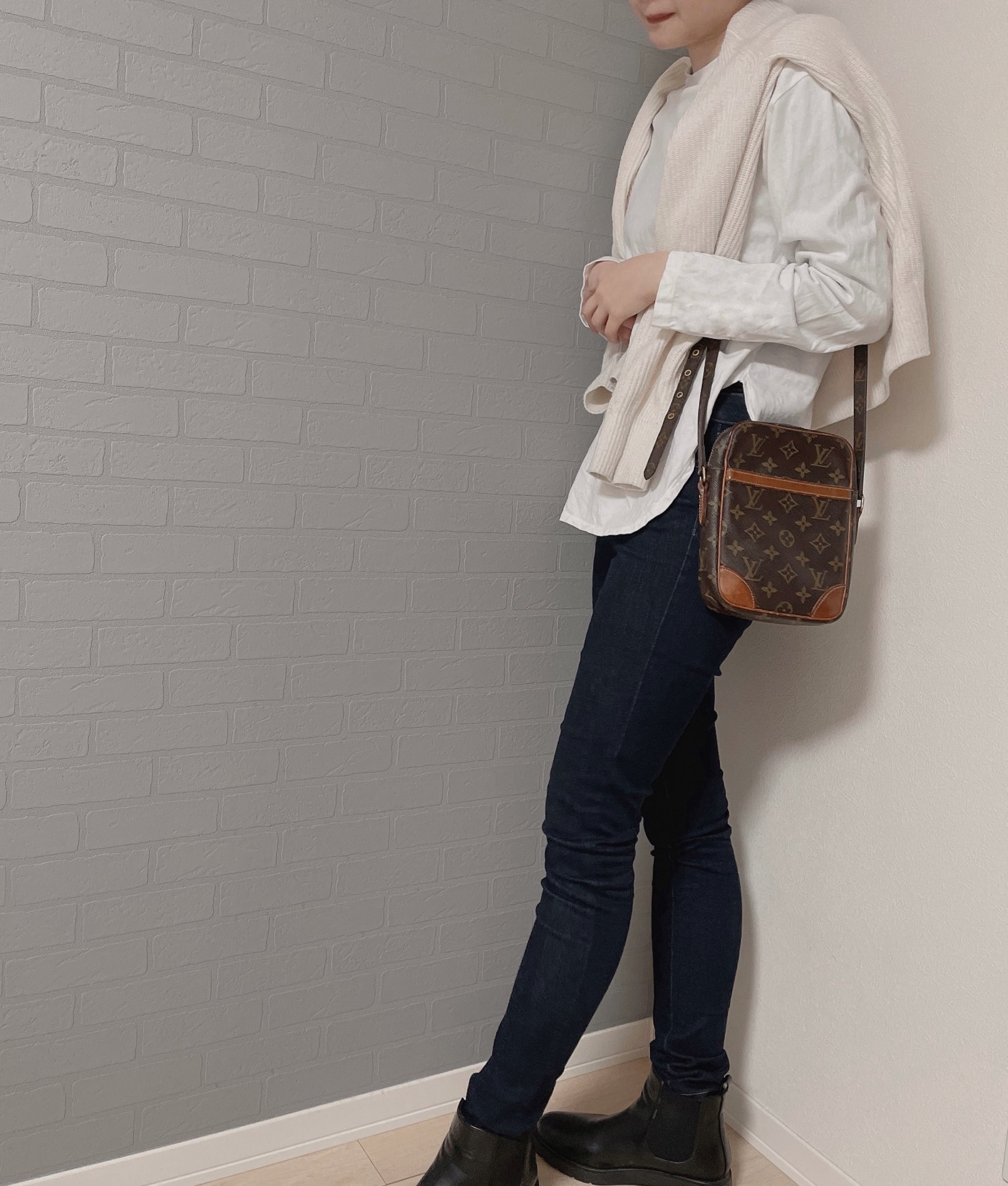 シンプルに黒のパンツとノーカラーコートに合わせ、綺麗めに仕上げたり、白ロンTに肩がけをした、こなれ感のあるコーディネートを組んでみました♪