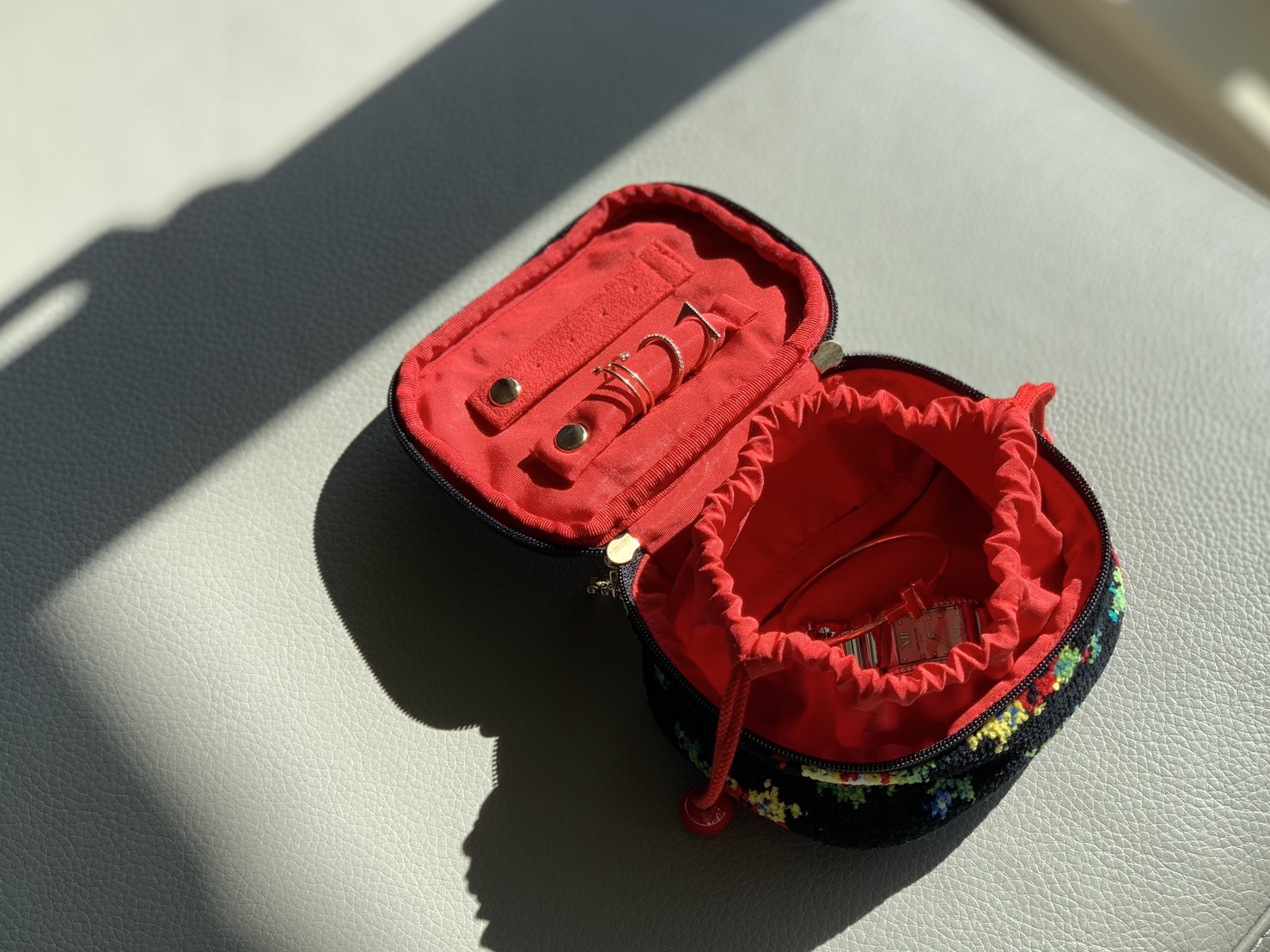 リングやピアスを収納出来るバーがついていたり、巾着になっているので時計やブレスレットを入れられるようになっています♪