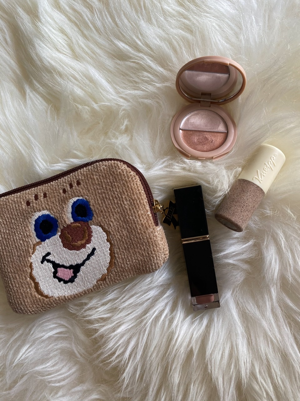 フェイラーのポーチには必要最低限のリップクリーム、色物リップ、ハイライトを入れています♪