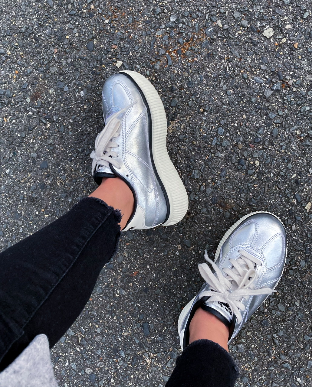 Sサイズさんなら絶対に一足は持っているであろう、厚底靴。スニーカーなら歩きやすいというメリットもあるので、ぜひ挑戦してみてほしいです♡