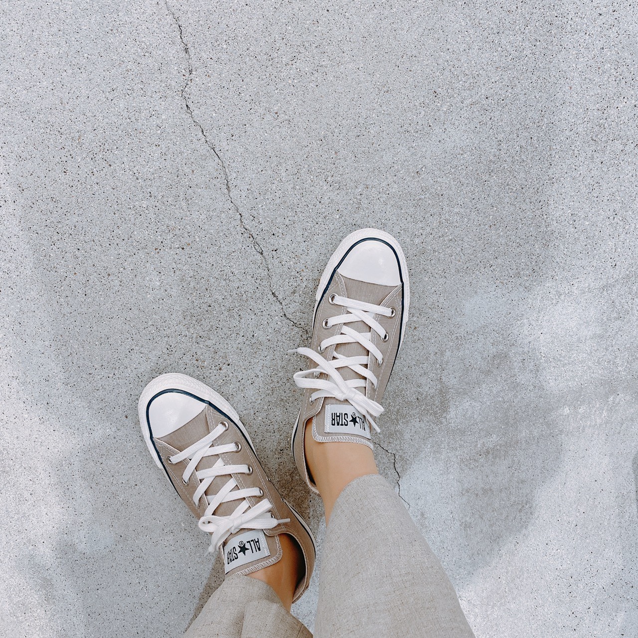 スニーカーが苦手な人、必見!きれいめコーデに馴染むのは「ベージュコンバース」