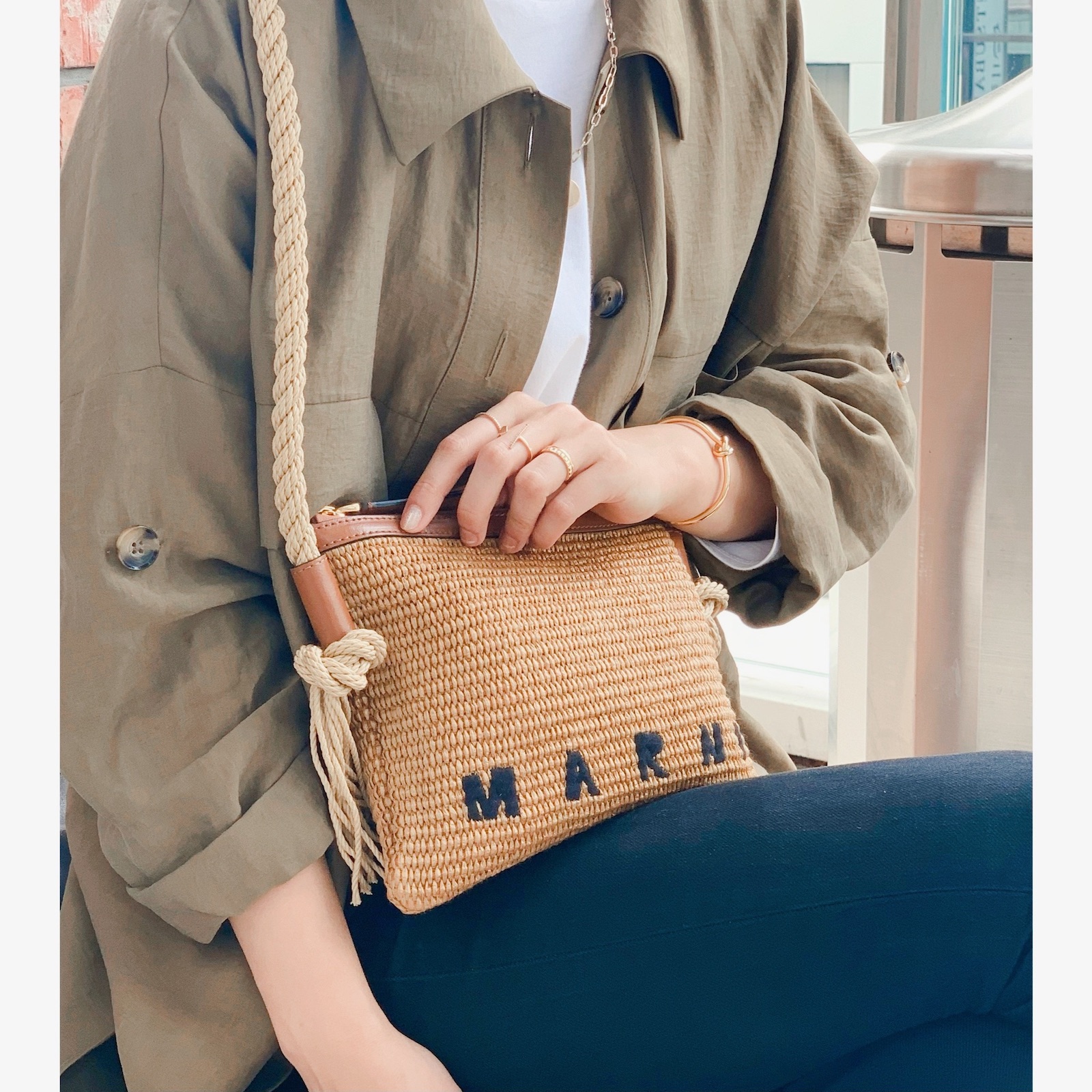 今回のコーデのメインは、今年こそはカゴバッグが欲しいなぁと探していた時に見つけた、MARNIのショルダーバッグです。