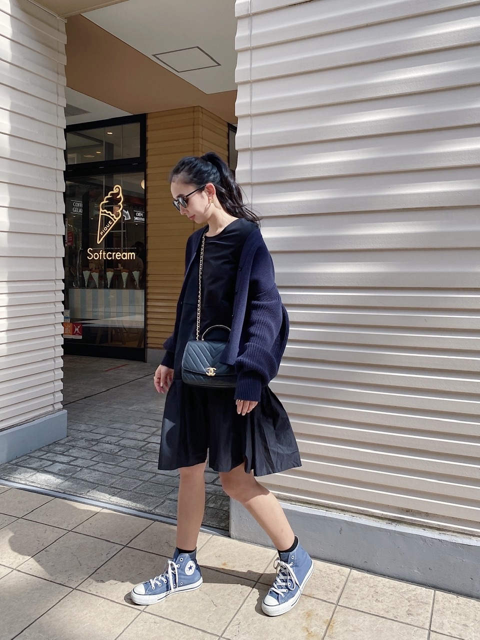 まずは定番のブラックカラーのコンバースを使ったモノトーンコーデです!
