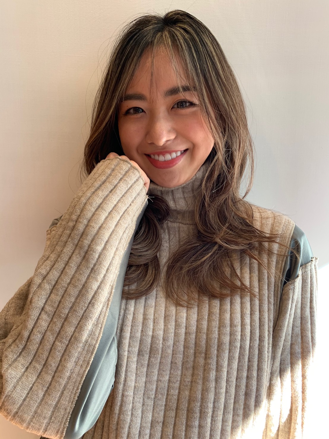 今は、ようやく育て続けた地毛ハイライトが出来上がってきたので、傷んでいた毛先を思い切って15cmほどカットしました。