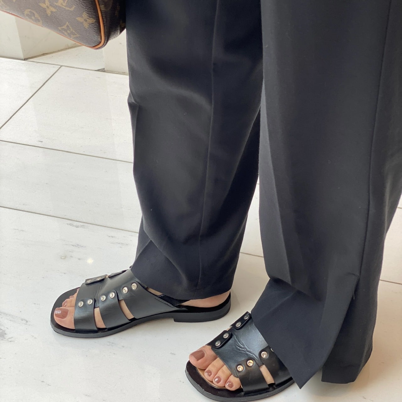 パンツも実はプチプラブランドのものです。GUのセールで、なんと1,000円以下で見つけました!センタープレスや、サイドのスリットのお陰で高見えします。