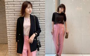ZARAで大人気のハイウエストパンツをついに購入!秋はブラウンなどこっくりカラーを着ることが多いので華やかなピンクをチョイスしました。ベーシックなアイテムなので色物でも使いやすいです♩