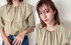 一枚持っておきたいと思っていた今季トレンドの「フリルカラーブラウス」。移動が多い日だったので、デニムを合わせてカジュアルに仕上げました。黒パンツを合わせて上品に着るのも素敵だと思います!