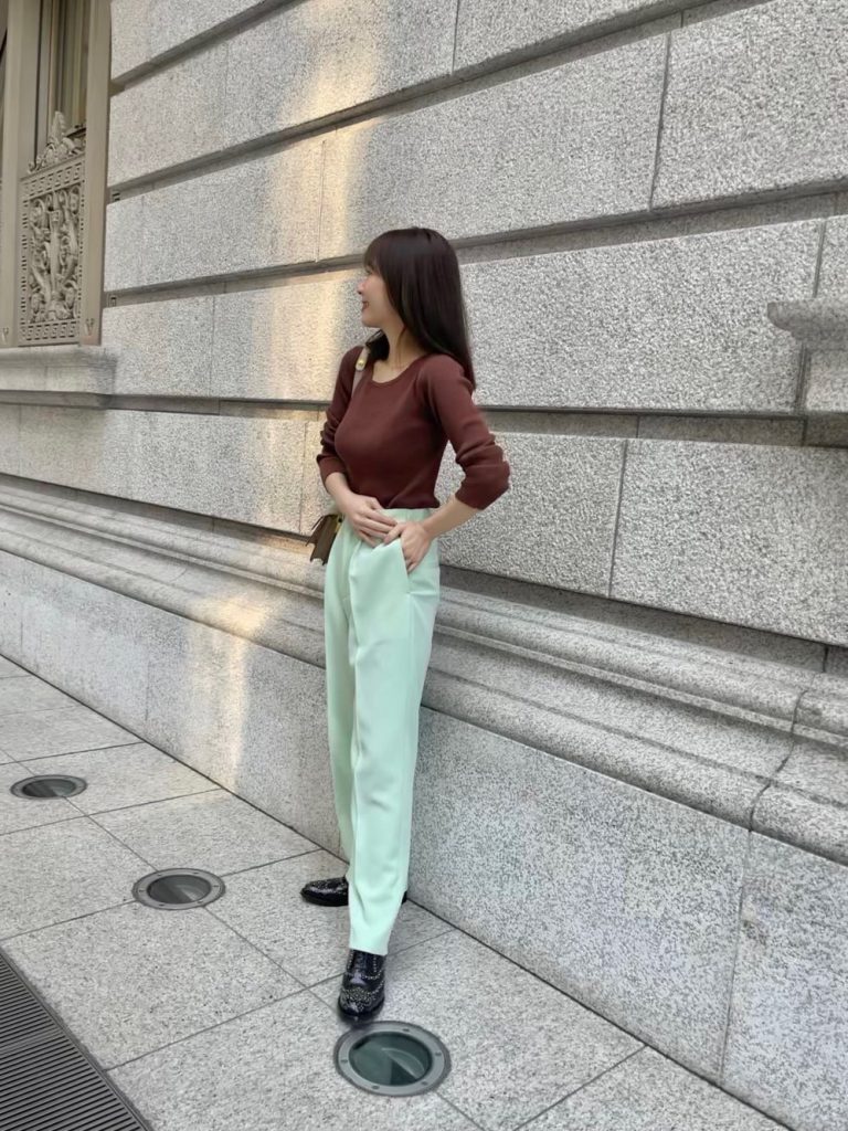 きれいめカジュアルなファッションが好きです。パンツスタイルのコーデが多いですが、ボーイッシュになりすぎず女性らしい要素をいれるようにコーディネートを組んでいます。