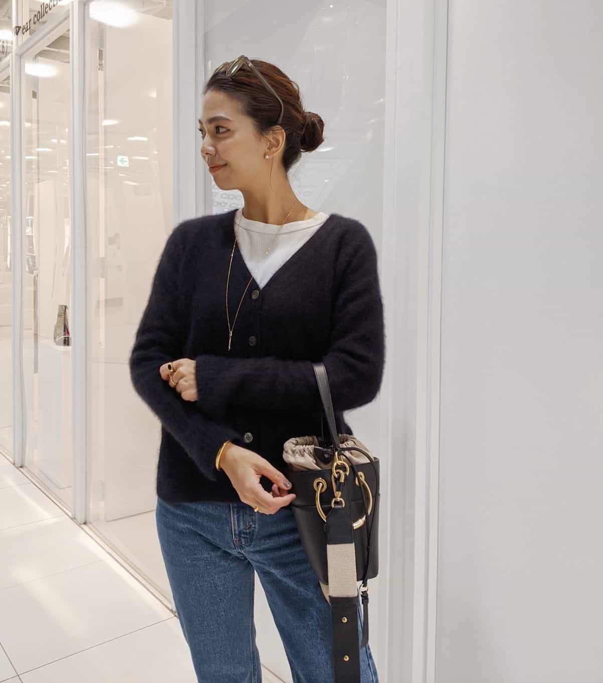 デニム合わせにニットを1枚ペラっと合わせると、いつもと代わり映えしない…!