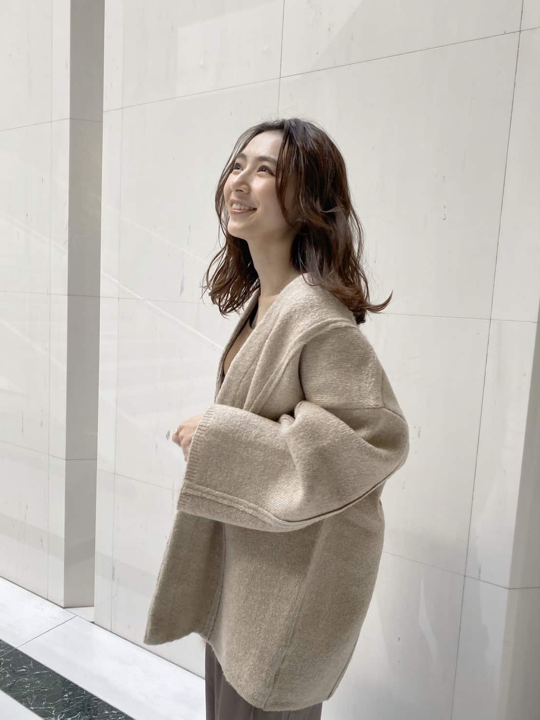 ボリューム感のあるニットはSサイズさんだと、着られている感が出てしまいがちですが、ガウンの様なデザインで取り入れるとゆるっと綺麗に着られます!