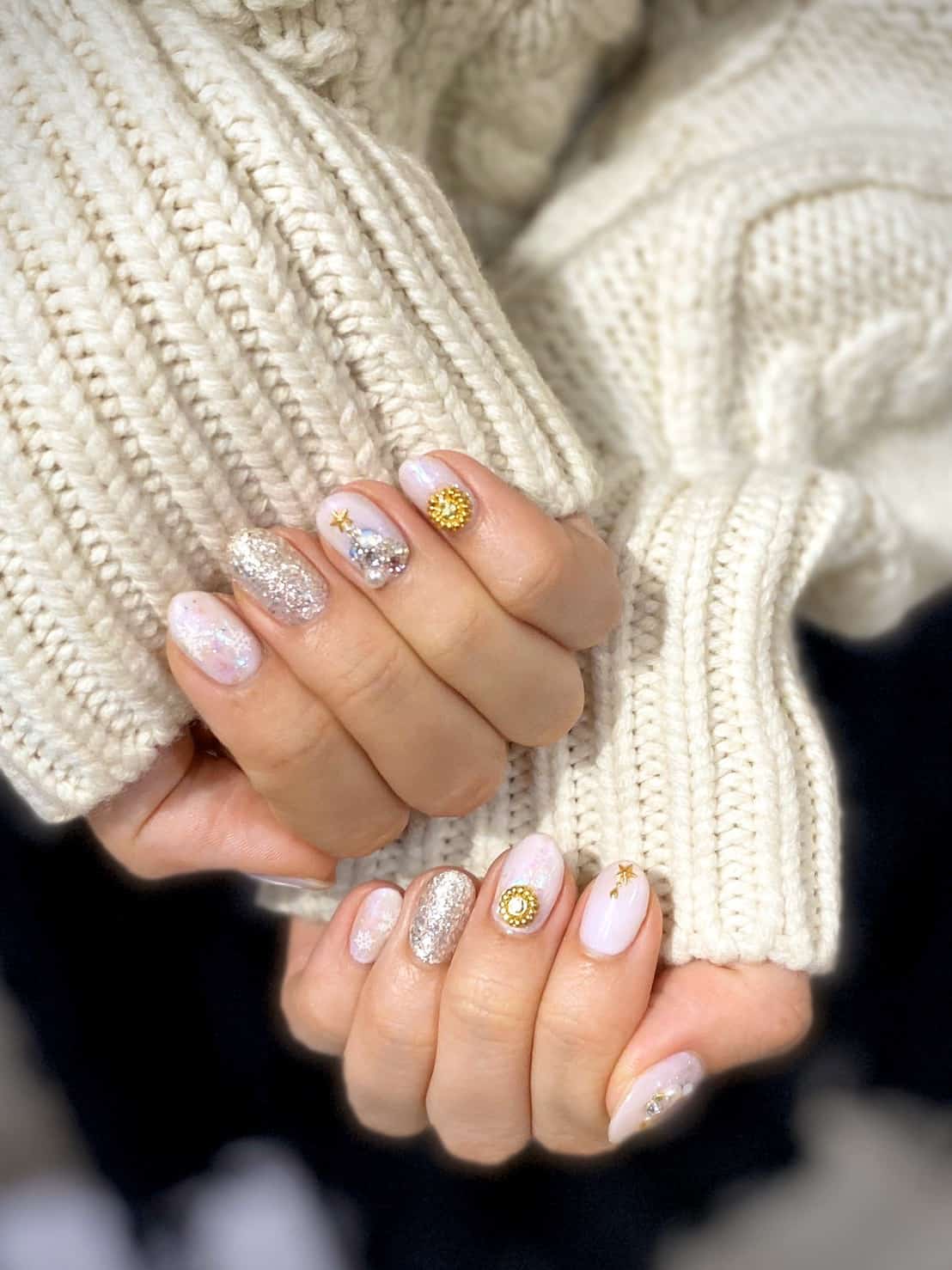 最近、ずっと通っているネイルサロン MalivinaNail でクリスマスネイルにしてもらったのですが、ホワイトのネイルに、白ニットがぴったり。萌え袖から見えるネイルがたまらなく可愛いのです。