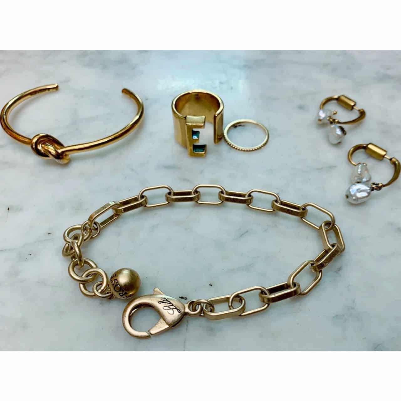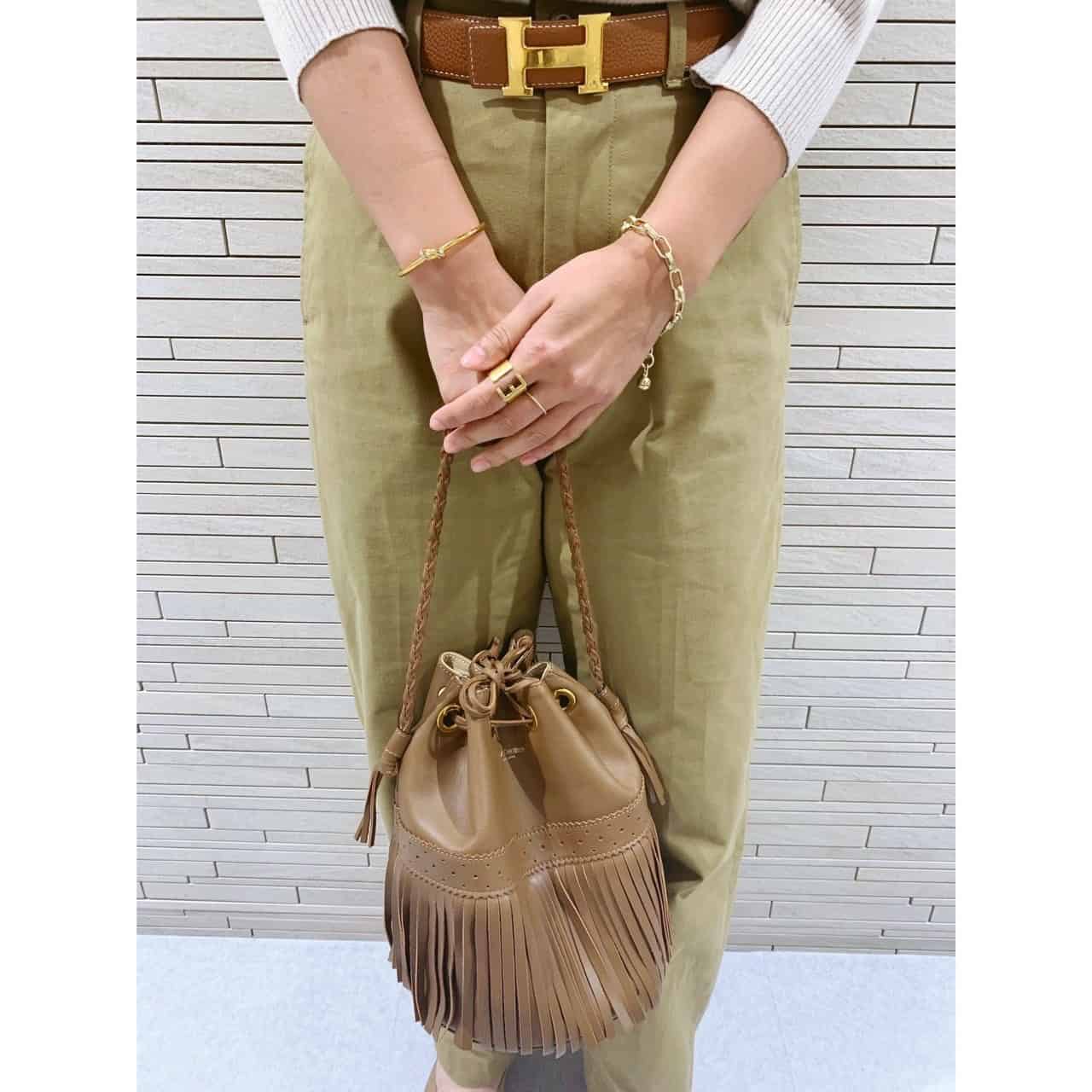 こちらも数年来使っているCELINEのノットブレスレット。どんなファッションにも馴染む名品です。加えて、最近は洋服にアクセントが欲しい時は、lulu frostのチェーンブレスレットも重ね付けしています。