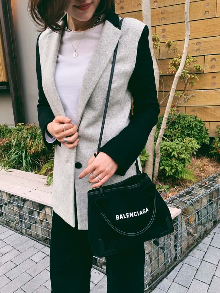 【モノトーンコーデのワンポイントになるBALENCIAGAのミニトートバッグ】