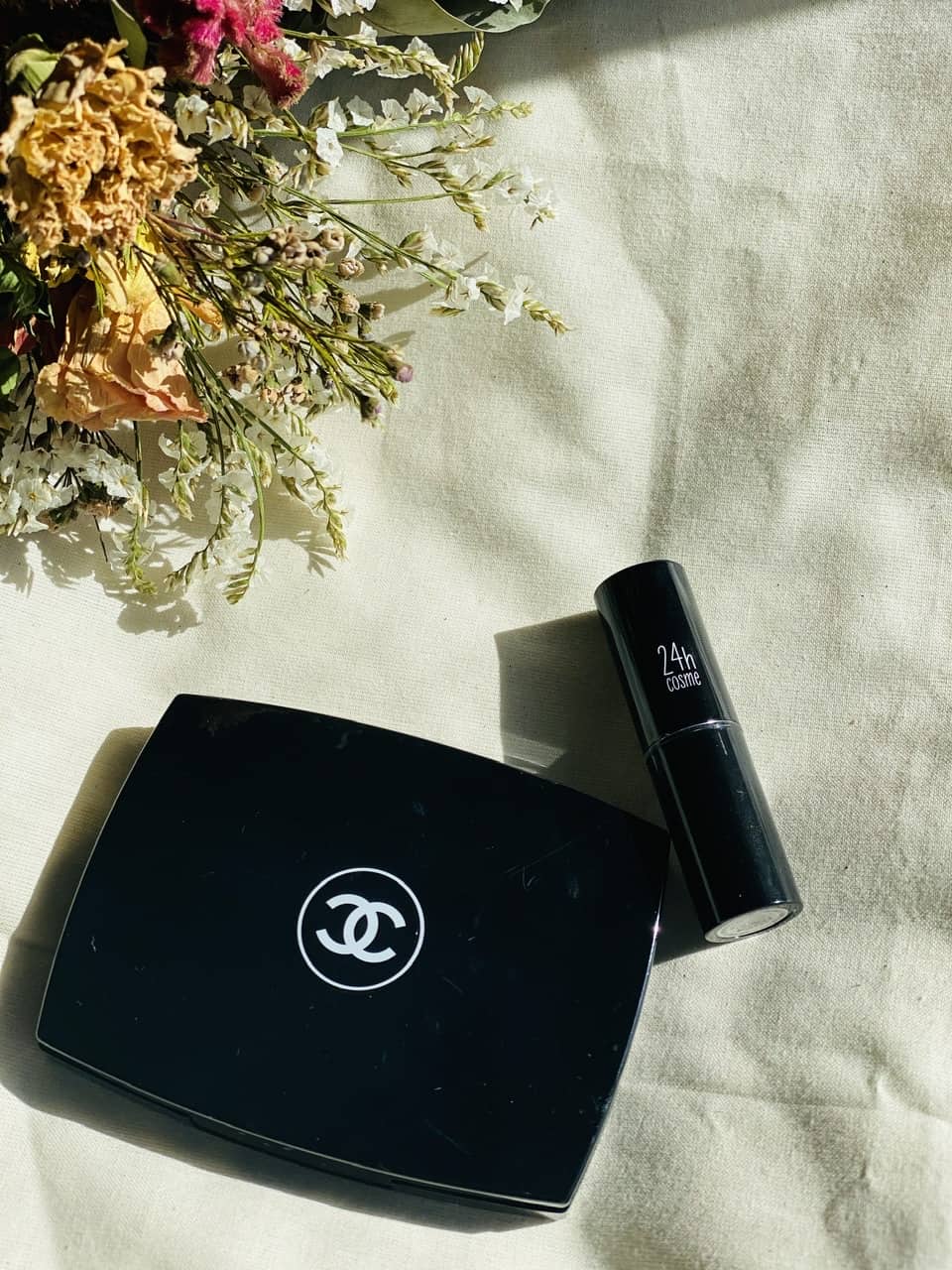 そしてピンク色の下地を塗ってから、シャネルのパウダーファンデーションを。