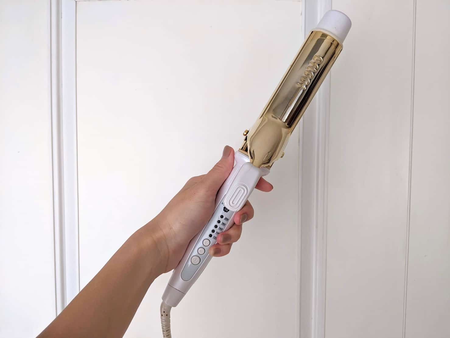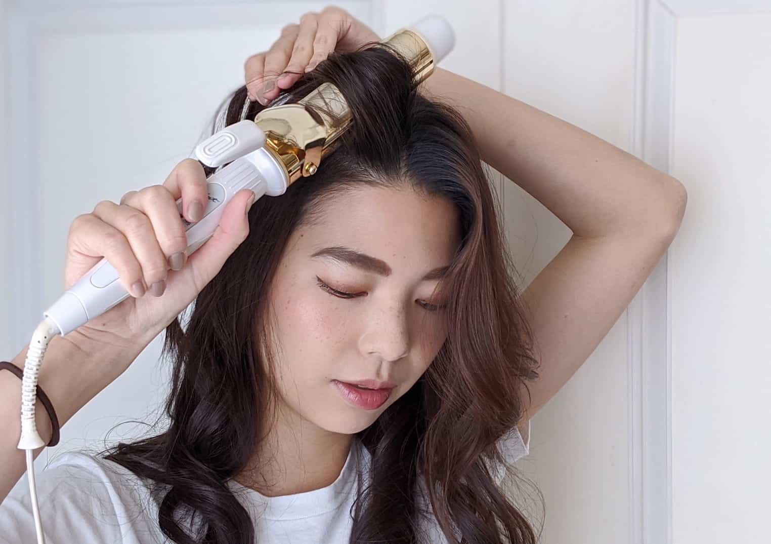 最後に根元からボリュームを出すために、コテを根元に押し当てます。↓