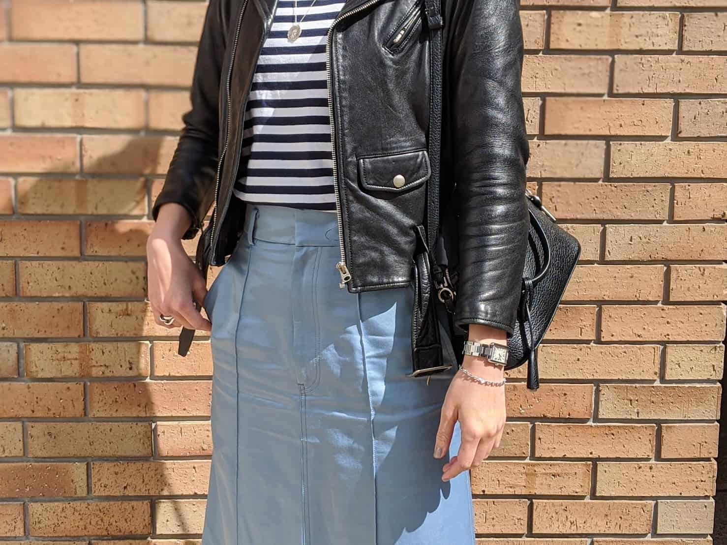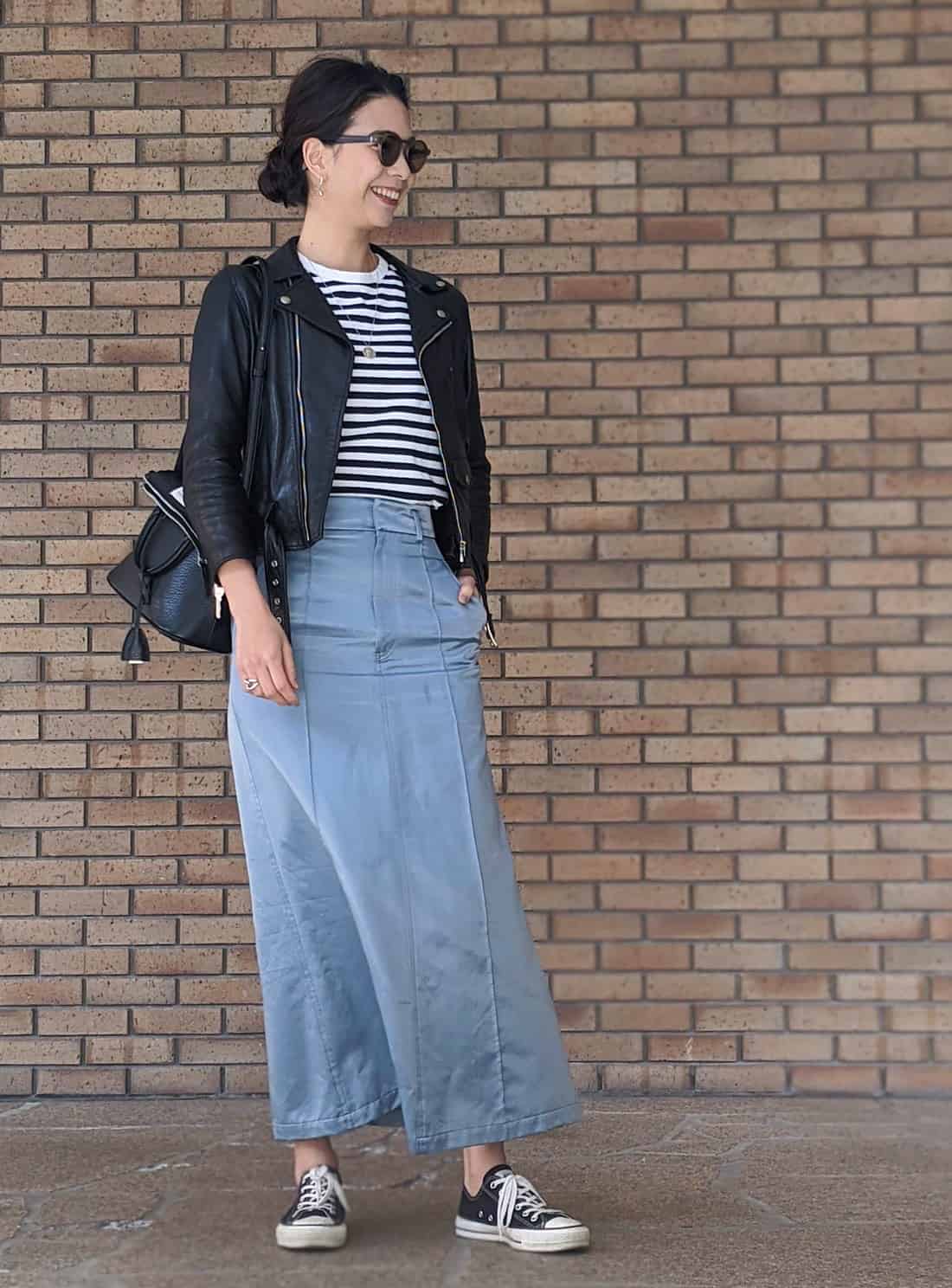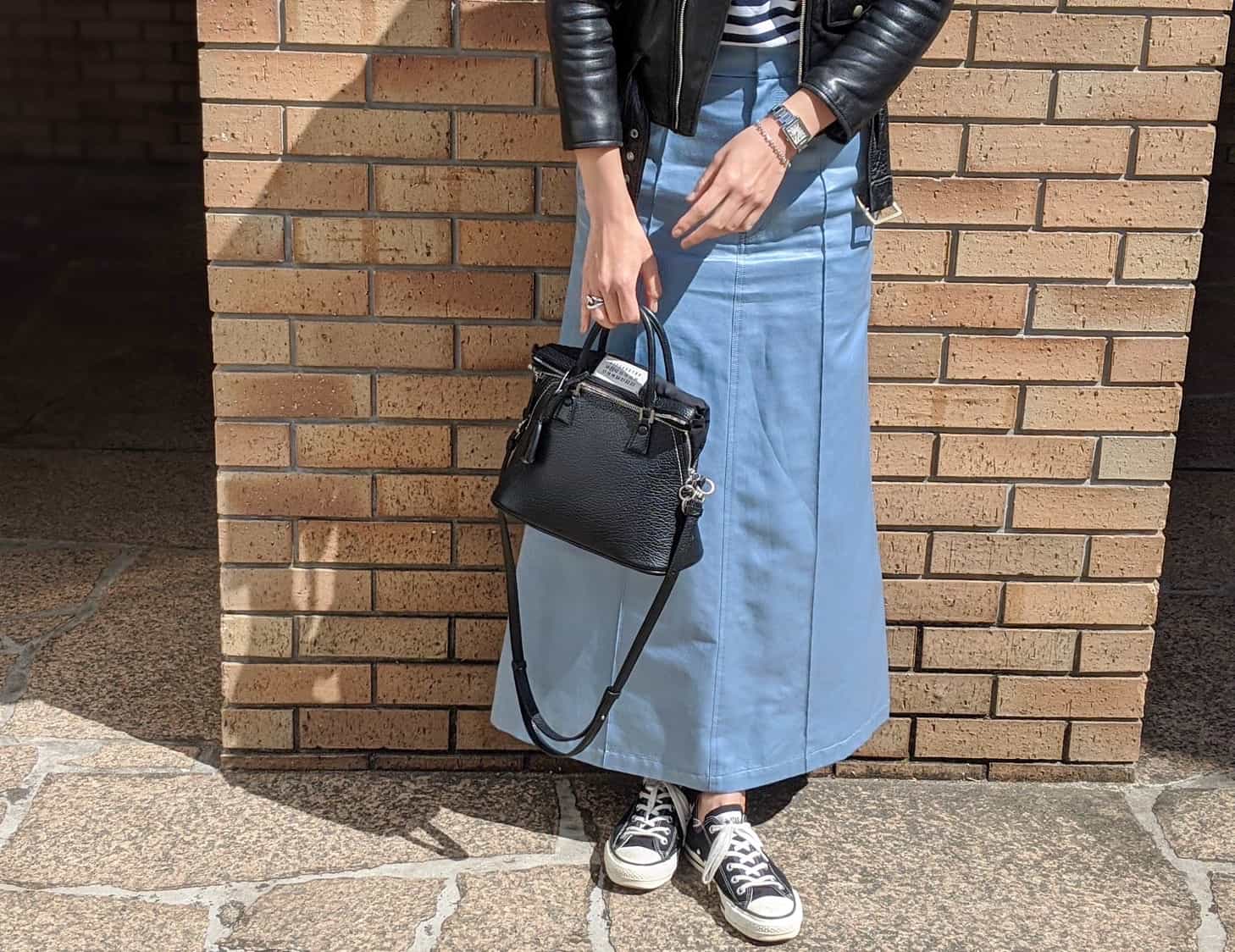 この日はAラインにして、NEWの春カラースカートを中心にしたスタイリングにしてみました。