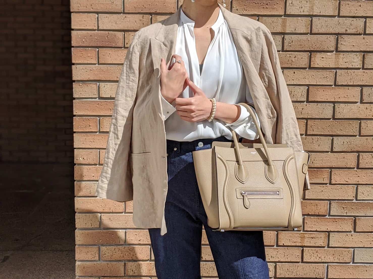 2つ目の春コーディネートはベージュのジャケットを使ったスタイリングです↓