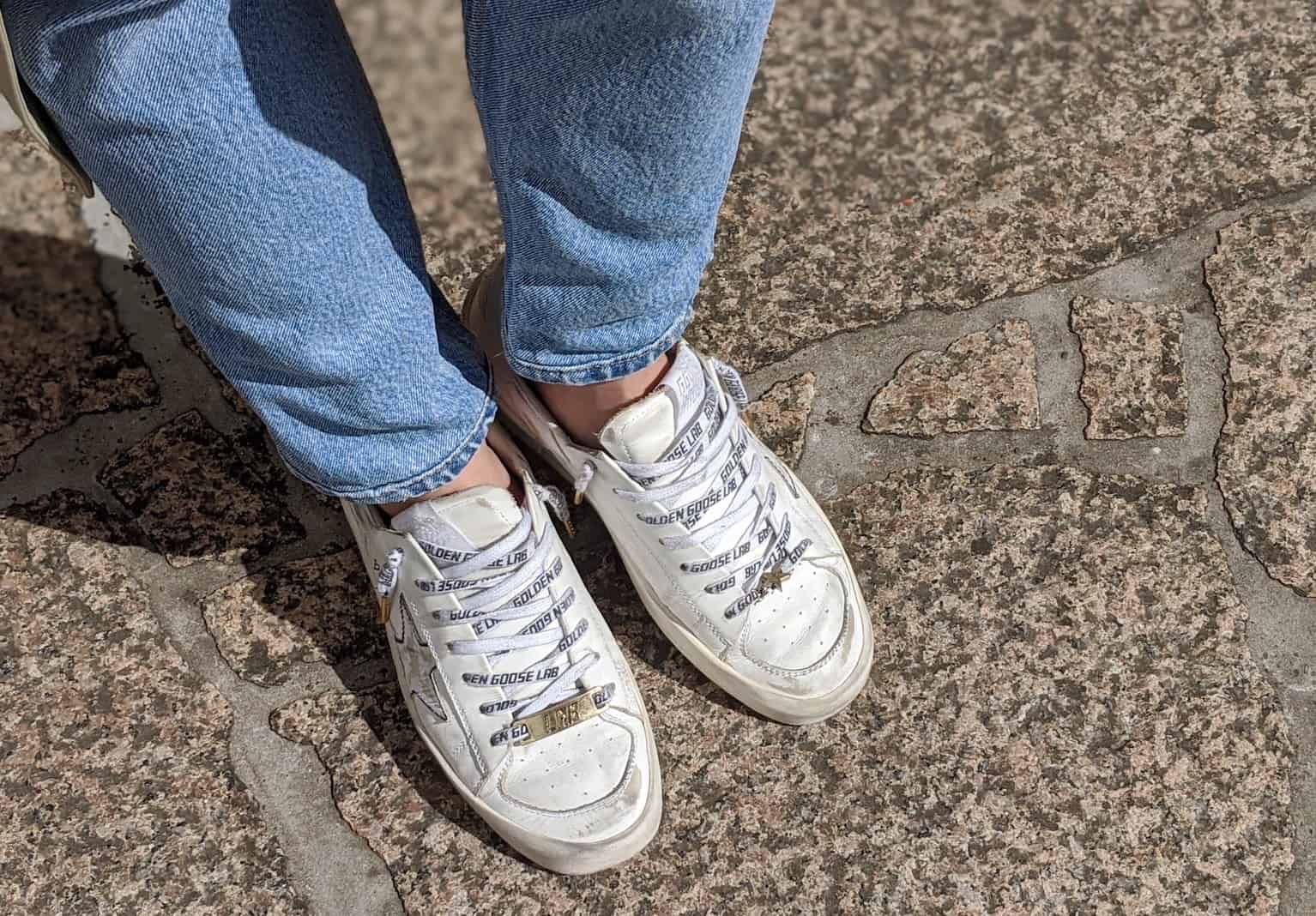 足元は週3で履いているお気に入りの“GOLDEN GOOSE”の白スニーカー!