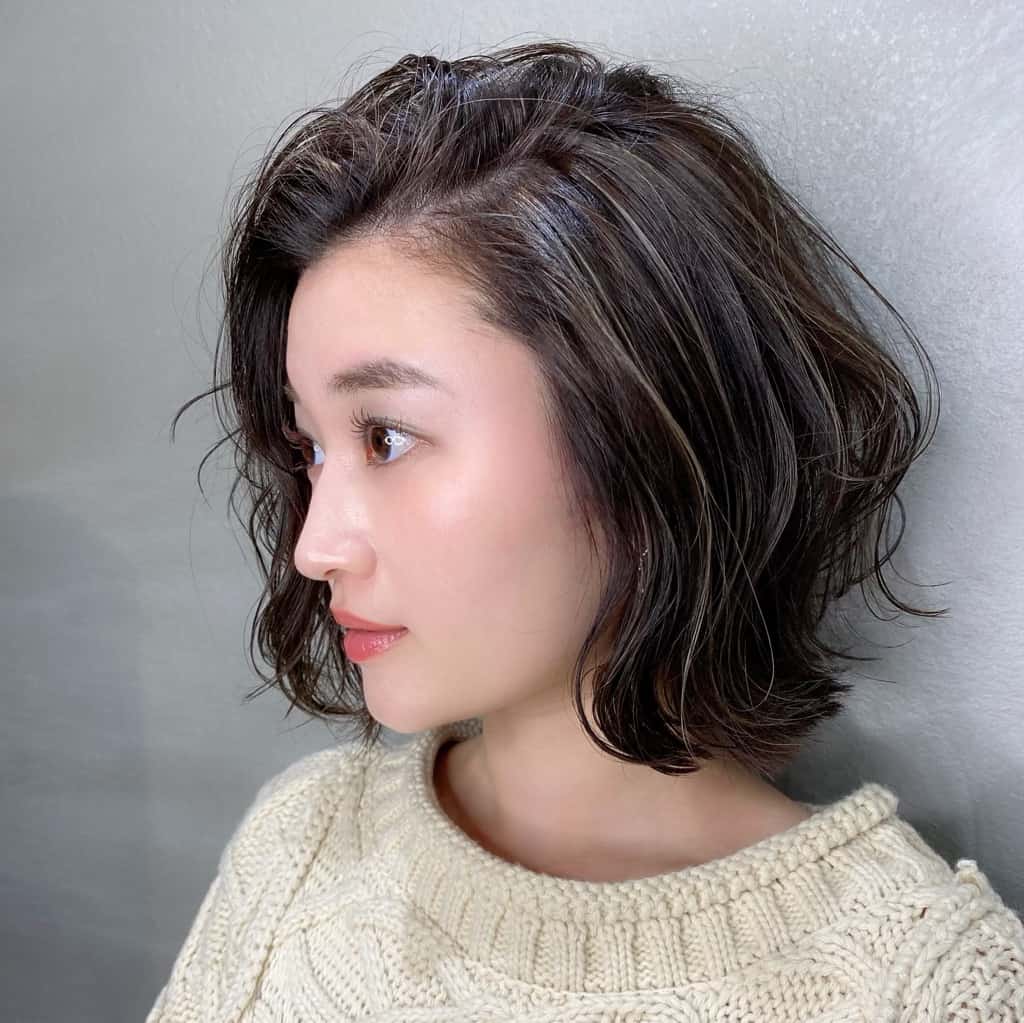 ボブの綺麗なラインとハイライトを生かすために巻き方は毛先をワンカールに巻くのみ