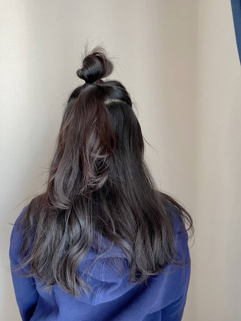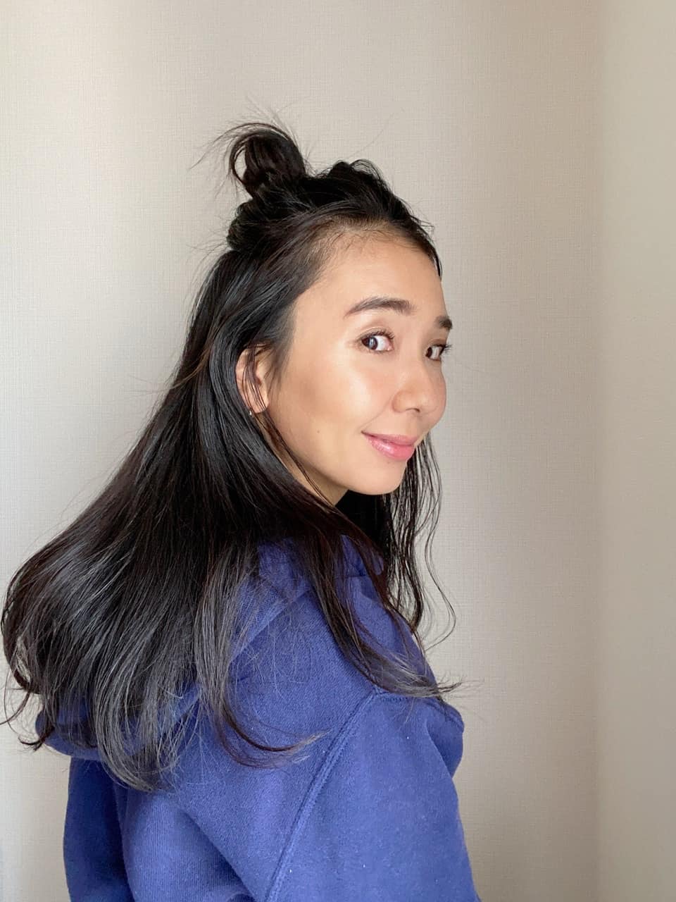 カジュアルなファッションのことが多いので、それに合わせたハーフアップお団子ヘアをしてみました。