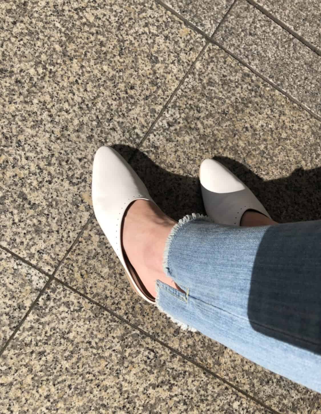 コーディネートには白を取り入れることが多いのですが、足元に白を取り入れると、一気に今年らしくなる気がします。