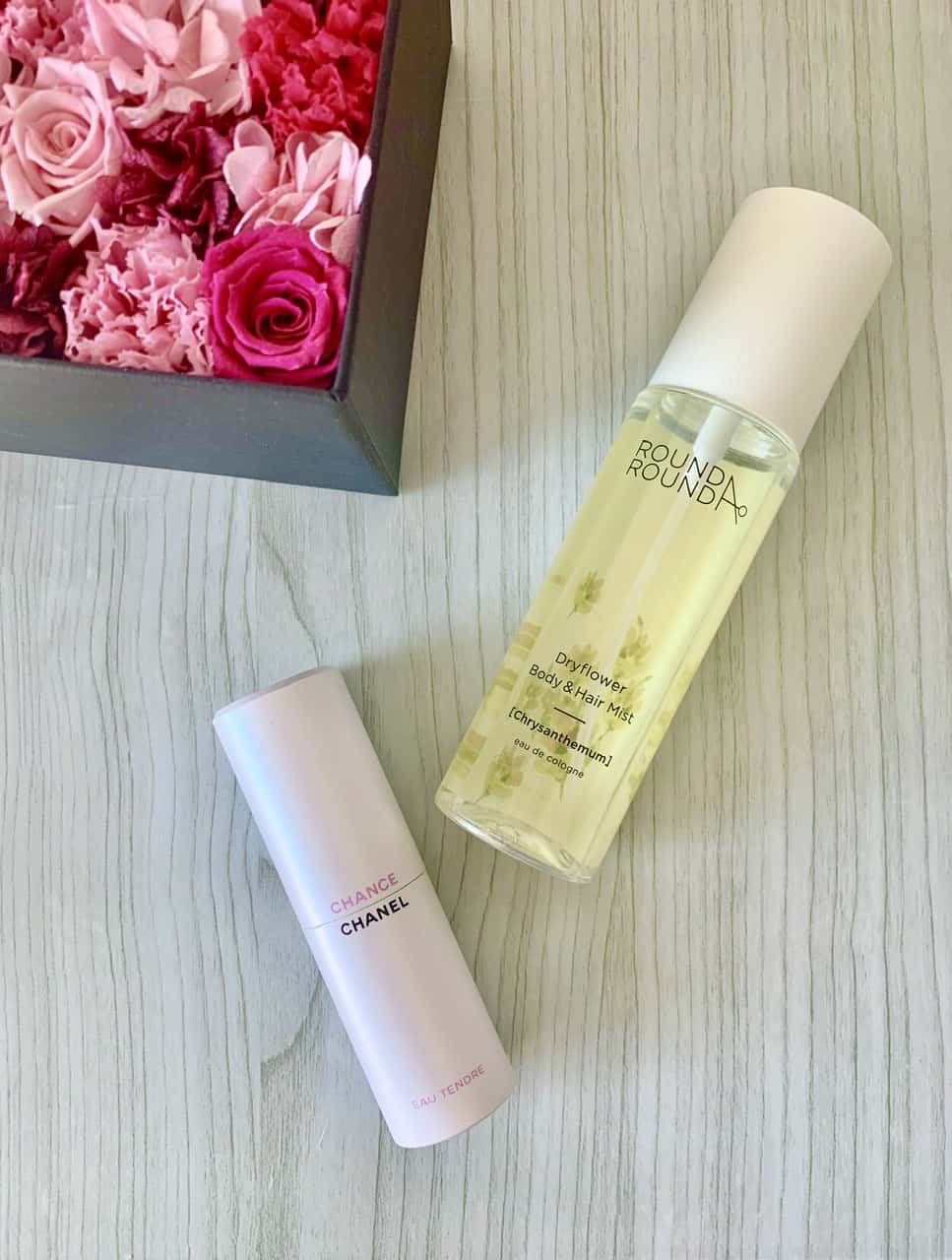 そして次に、最近出会ってしまったROUND A ROUNDのドライフラワーボディ&ヘアミスト。韓国のブランドで友人に薦められ使い始めました♡