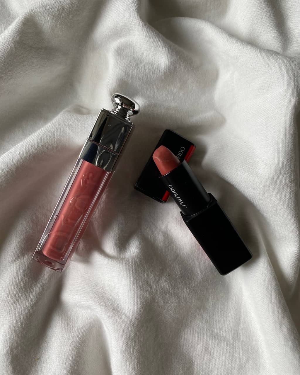 【Dior アディクトリップマキシマイザー012ローズウッド】と【SHISEIDO モダンマットパウダーリップスティック508】です。
