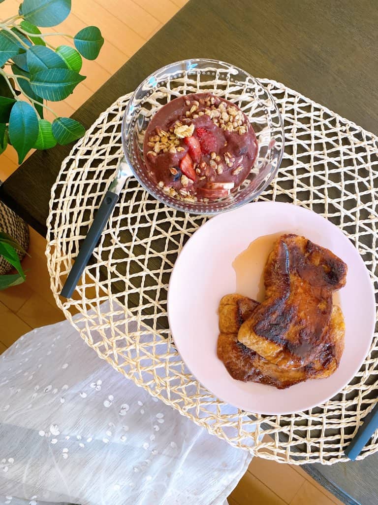 朝ごはんは、ハワイアンモーニングが大好きでフレンチトーストやアサイーボウルをよく食べます♪