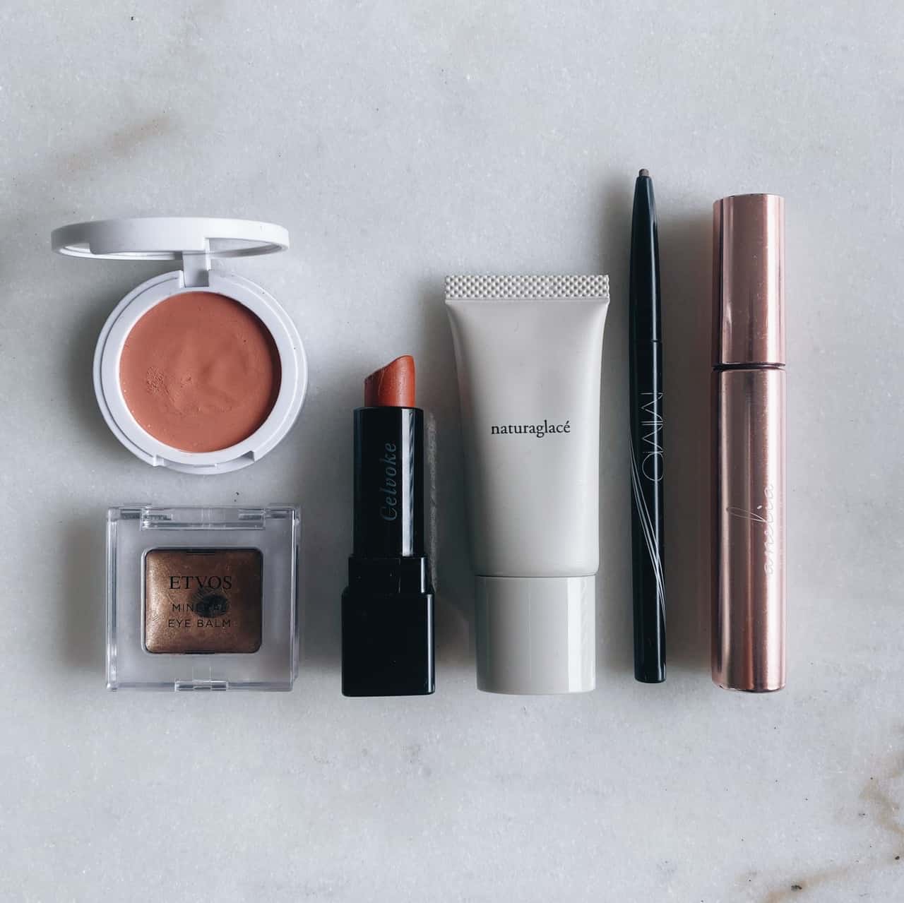 最近は、ブルーライトカットができる日焼け止めや、PC越しの画面でも明るい印象に見えるオレンジ系のアイテムをよく使っています。