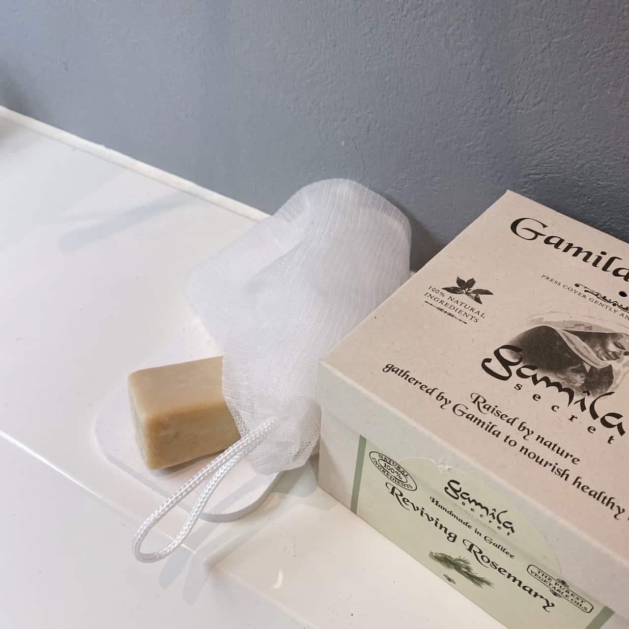 洗顔は、ガミラシークレットの石鹸をよく泡出てて使っています。香りがいくつかありますが、最近は暑くなってきたので、スッキリとクリアな香りのローズマリーを選びました。以前はぬるま湯だけで済ませてしまうことも多かったですが、朝にきちんと洗顔をするようになってから、肌荒れや毛穴の詰まりが改善されてきたのを実感しています!