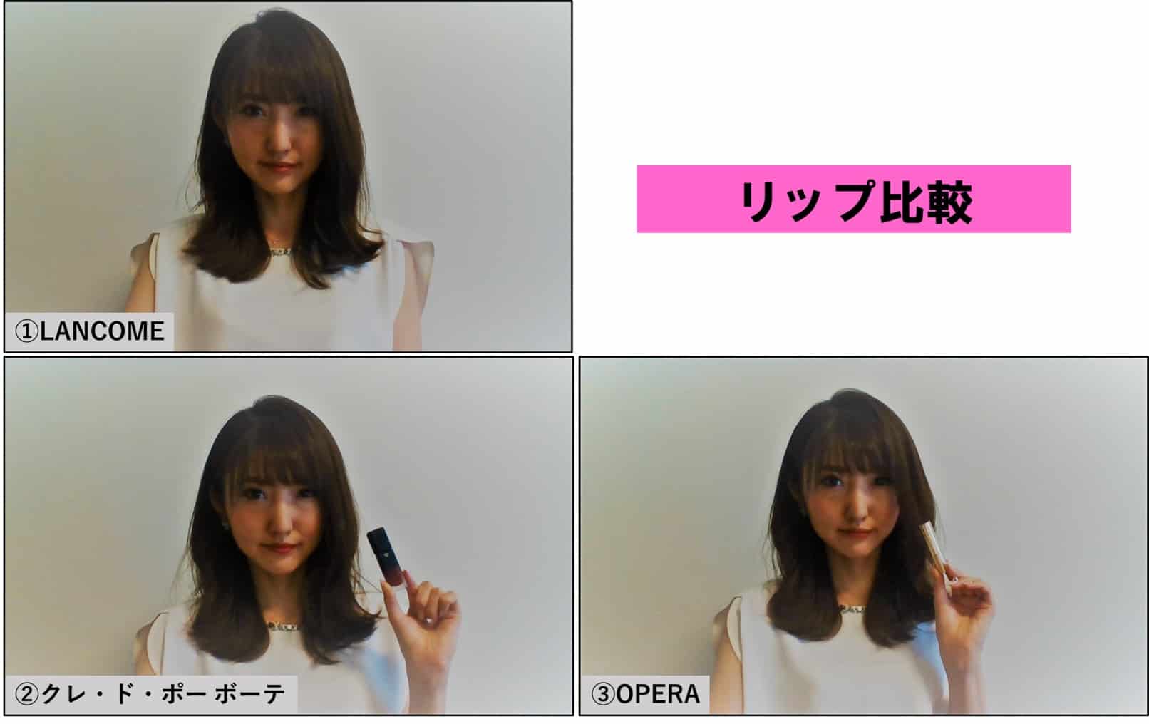 このOPERAのリップは上の二つリップのちょうど中間の色です。