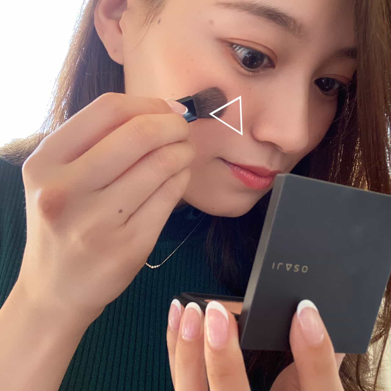 日焼け止めのうえにパウダーをつけるだけで、スッピン感を無くすことができます。