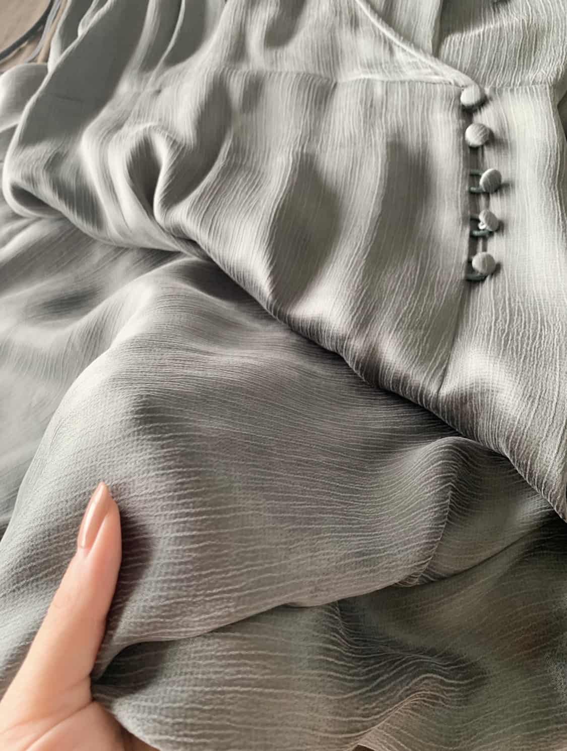 何色か色違いがあったのですが、光によってはグレーやブルーにも見える?このスモーキーなグリーンに一目惚れしました。
