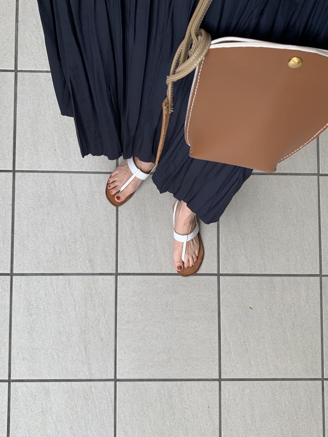 そしてオフの日はぺたんこサンダルとポシェットを合わせてカジュアルスタイル!