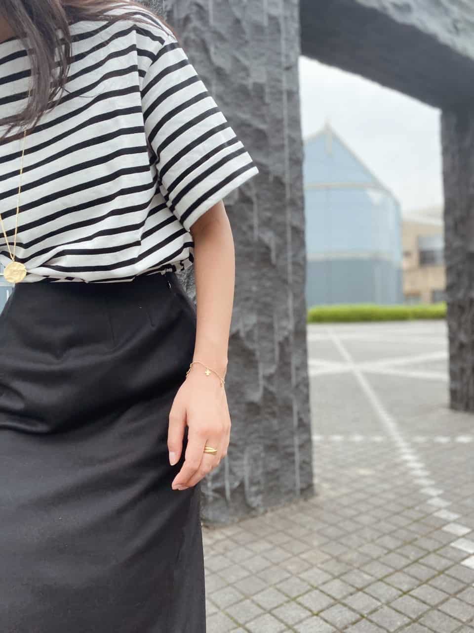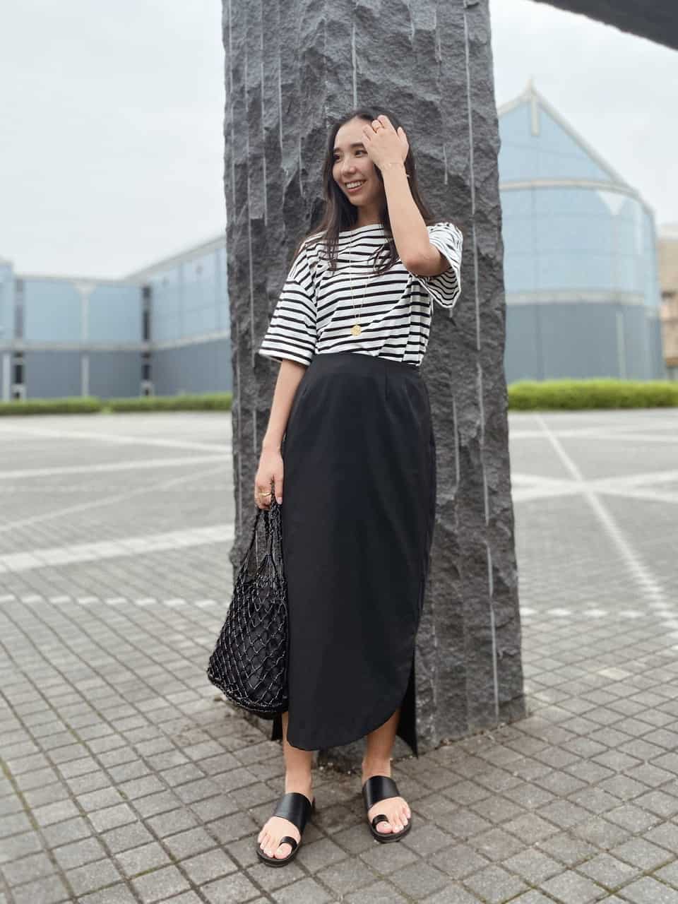 モノトーンの大人カジュアルコーデにしてみました!ボーダーはカジュアルな印象がありますが、モノトーンでまとめると引き締まって大人っぽい雰囲気になります。