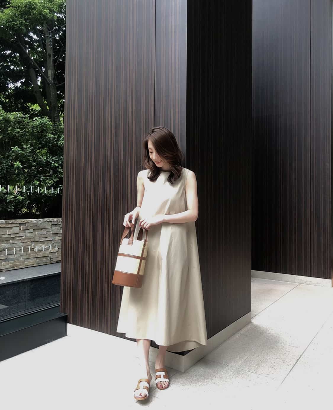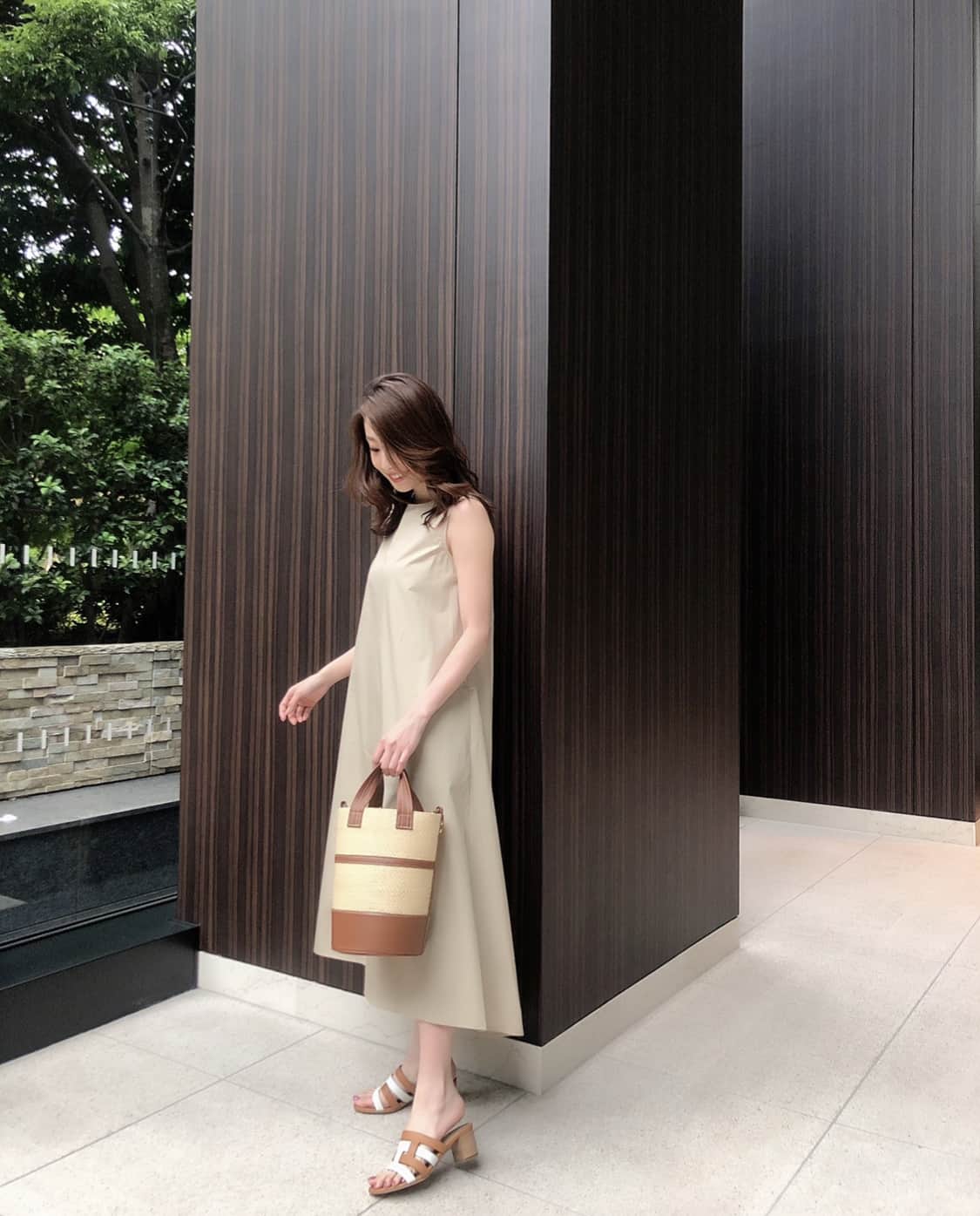 さらっとしたワンピースには、ストロー素材のものや、かっちりすぎない夏らしいサンダルを合わせるのが好きです。