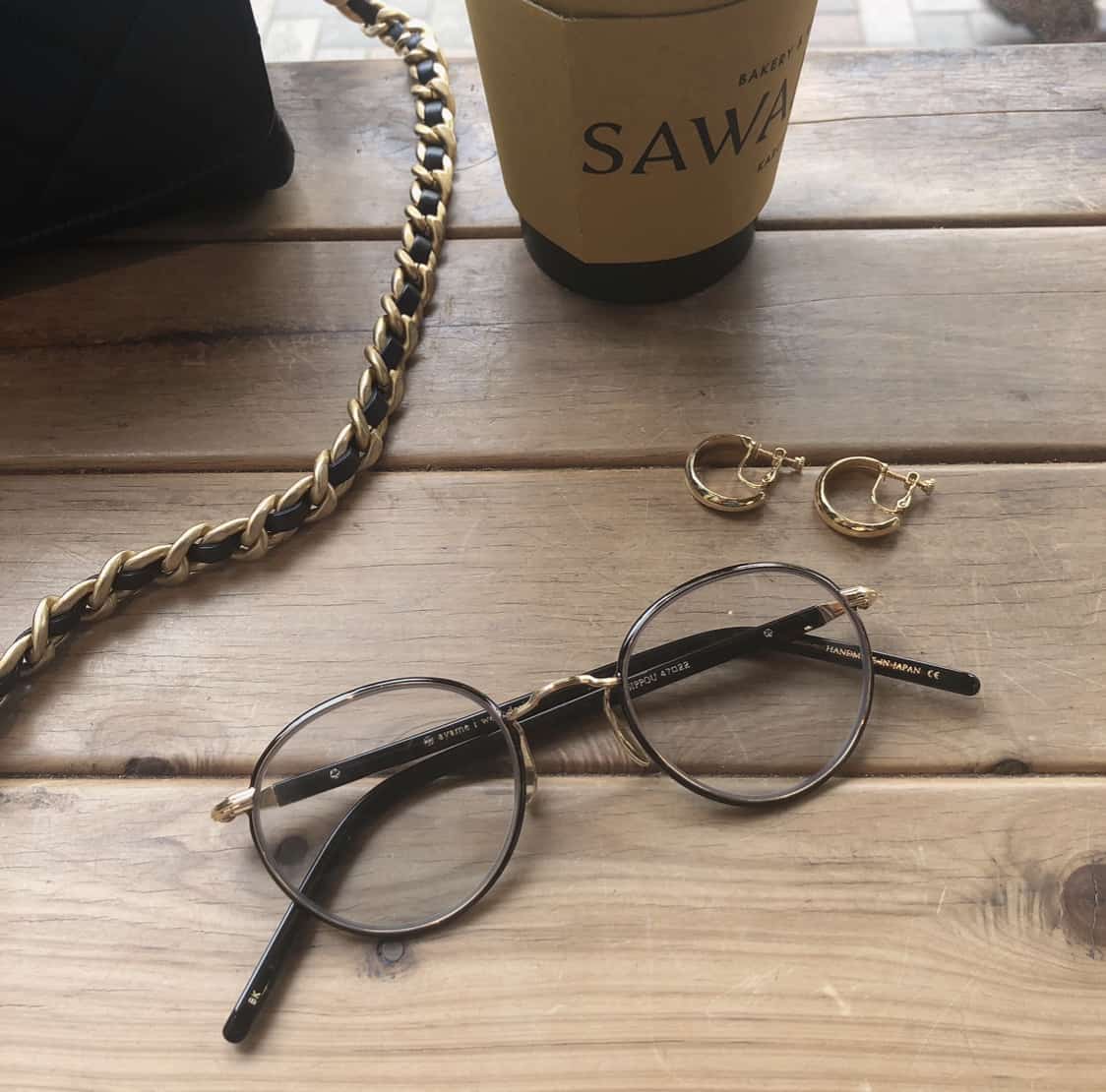 形はカジュアルですが、フレームが黒とゴールドなのでカジュアルになりすぎず大人ぽく使えるので、気に入っています!