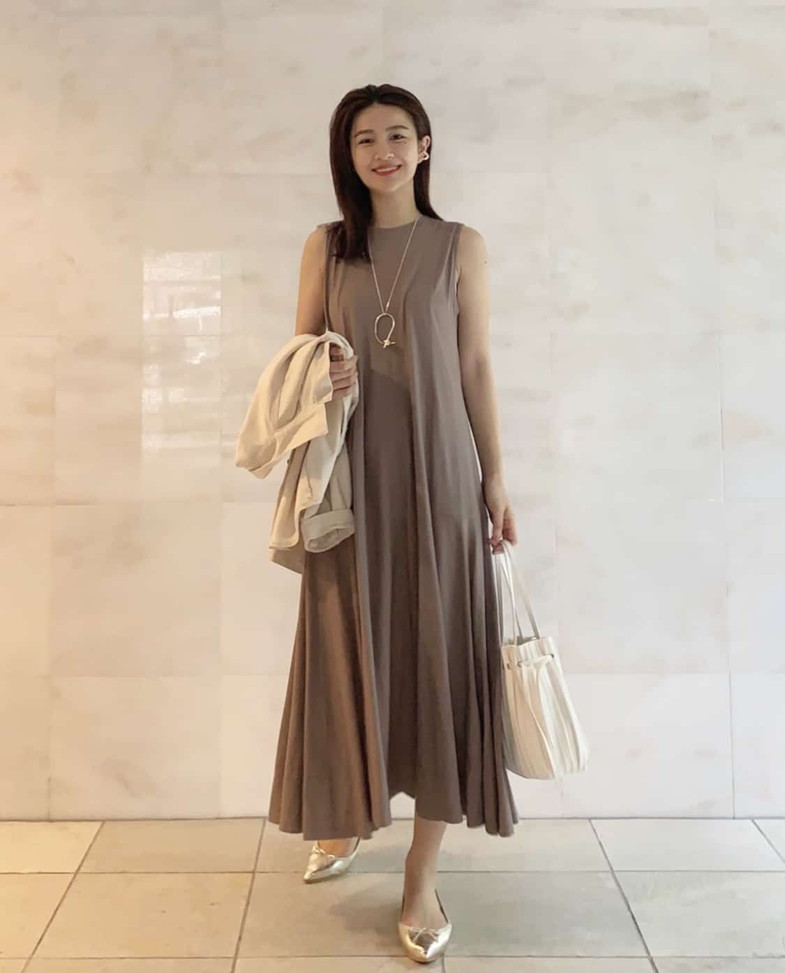 サラッとしていて形がとても可愛いワンピース♪優しいブラウンのカラーが気に入っています。ベーシックなので小物次第で印象がガラッと変わります♪