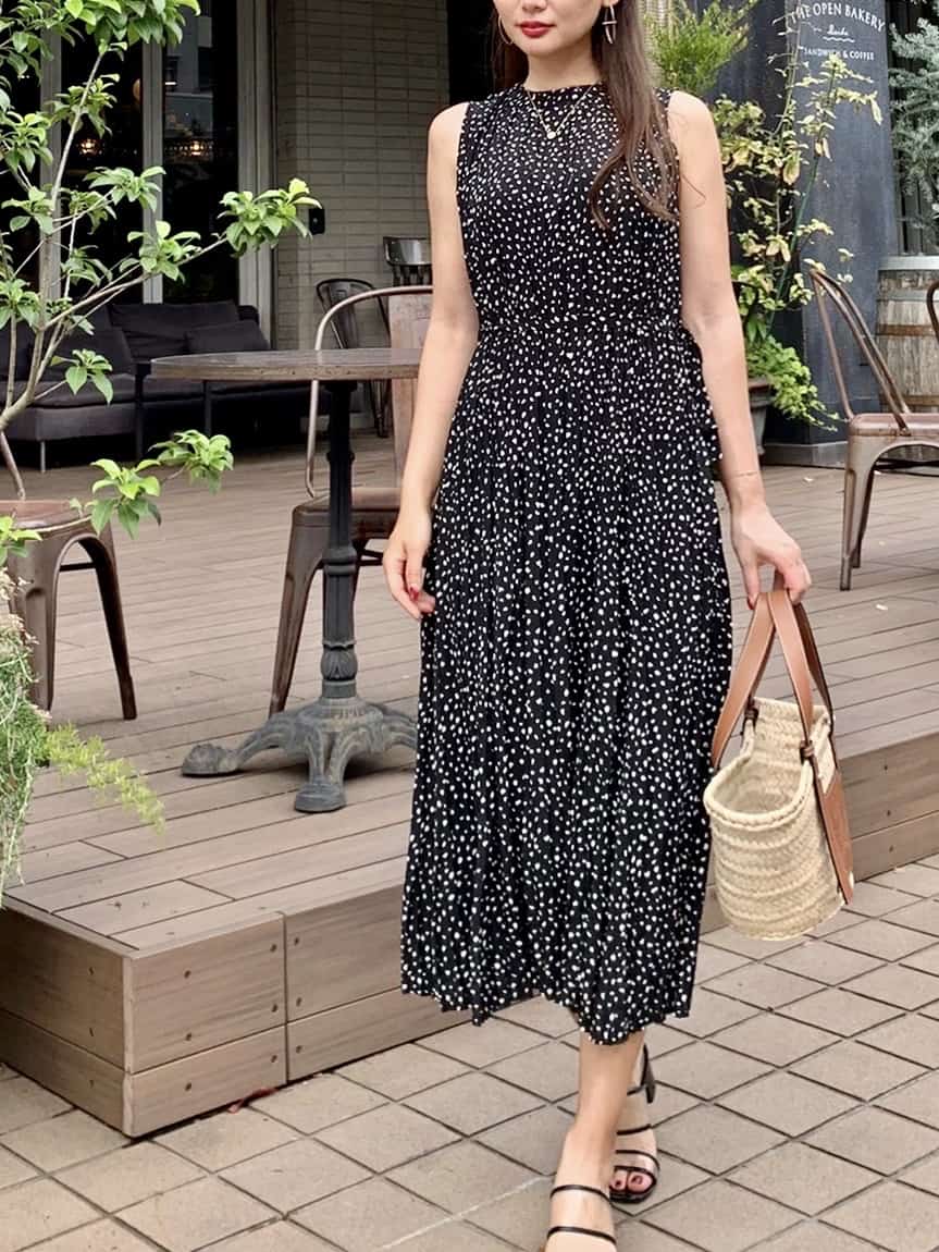 ダルメシアン柄ワッシャープリーツワンピース