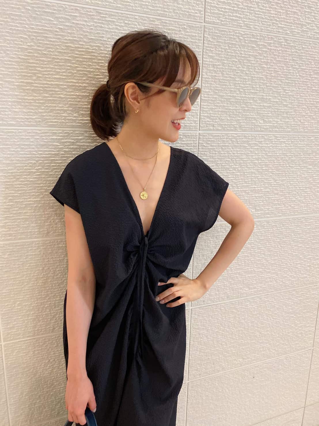 シンプルなデザインのコーデの日は、アクセサリーやサングラスで華やかさをプラスします!もともとアクセサリーはシルバー派でしたが、今年の夏はナチュラルな気分なのでゴールドアクセを取り入れています!