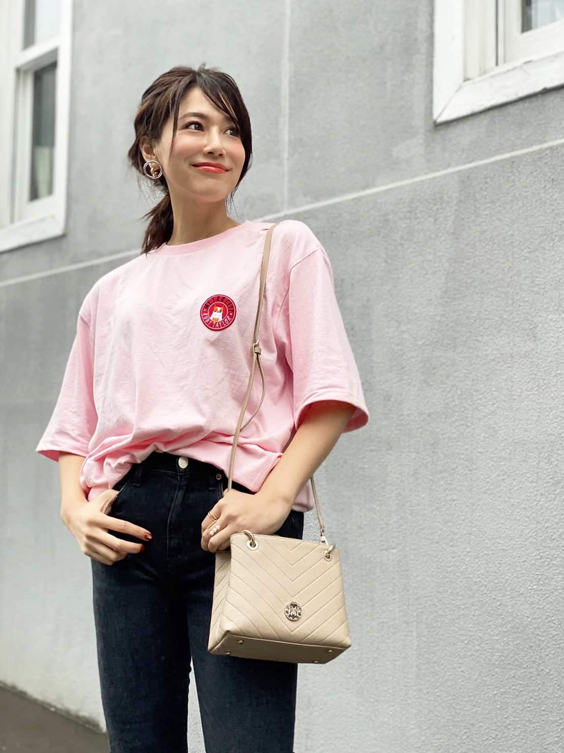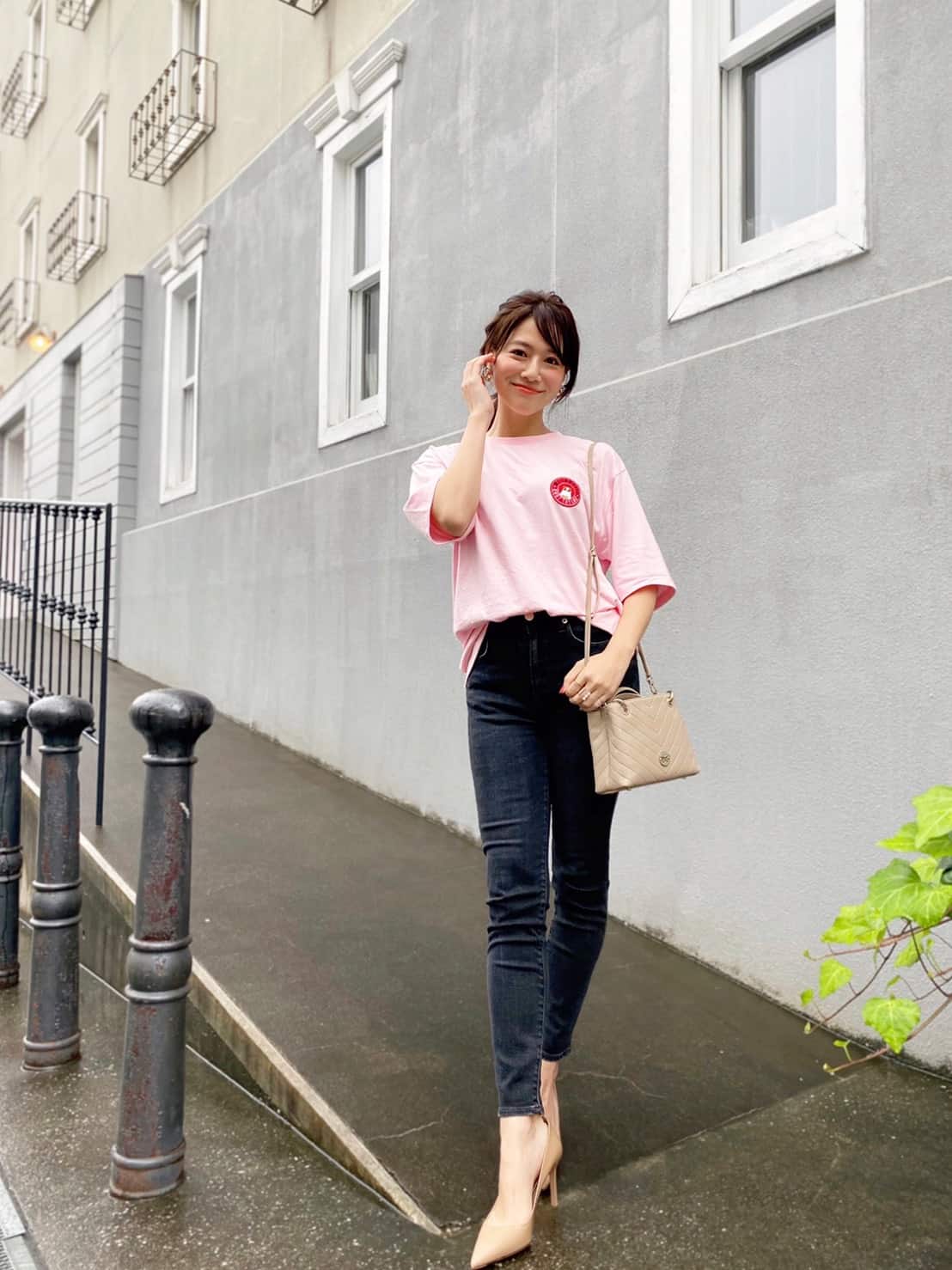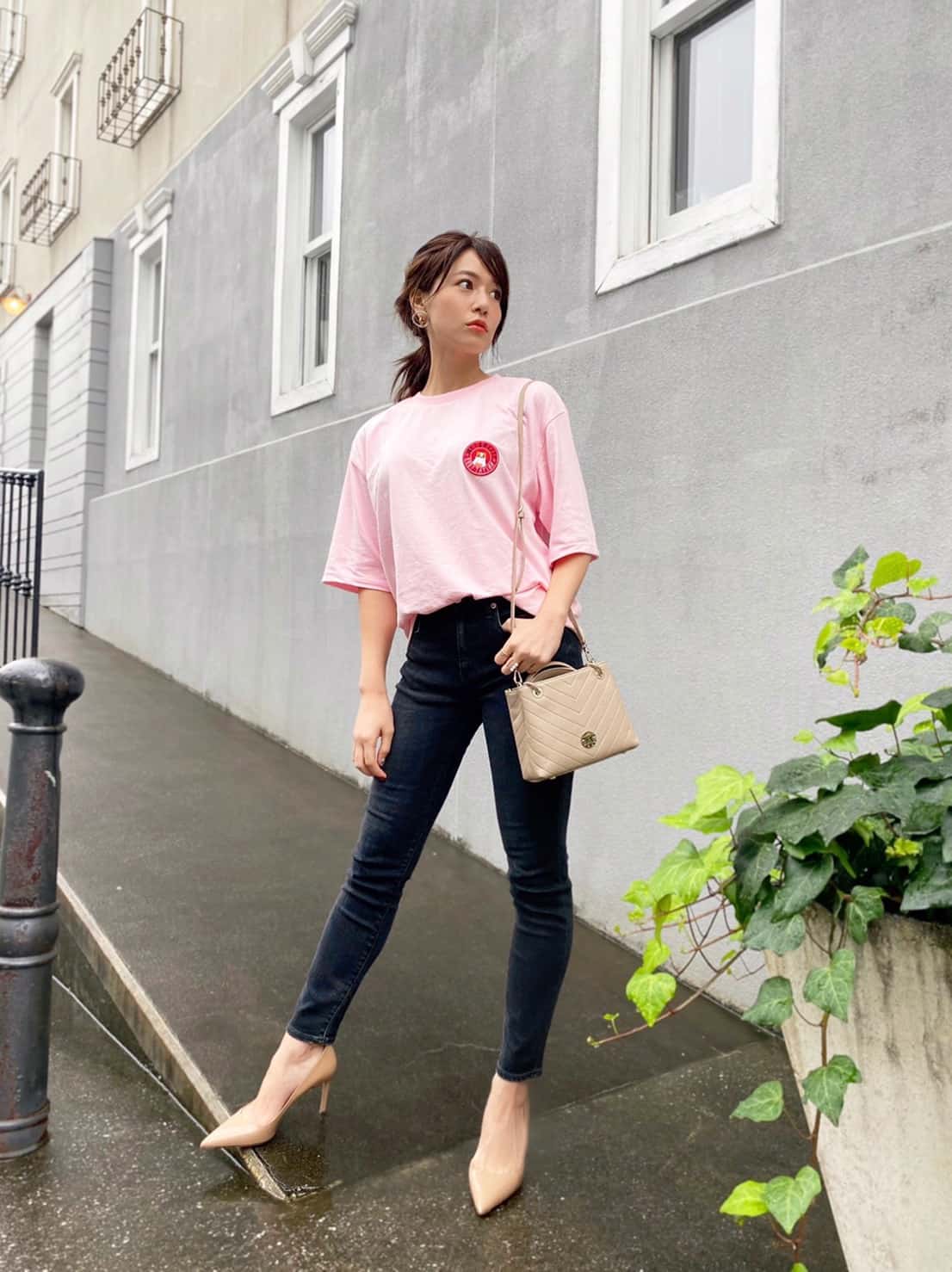 またトップスのピンクと濃いめのデニムの愛称は〇!