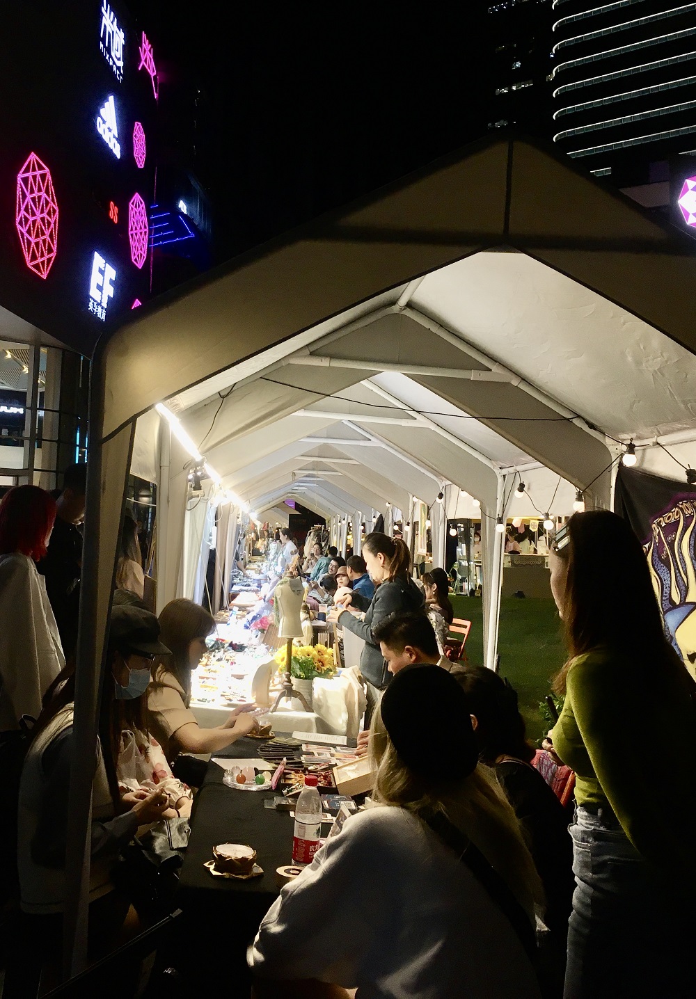 上海では週末のフリーマーケットや夜市が大盛況。摆摊(バイタン)といって、露店での直接販売の意味で流行語にもなっています。ショッピングセンター近辺、古い集合住宅を改装しておしゃれな店や飲食店が集まる中庭、上海外灘の河沿いなども夜遅くまで賑わっています。中には日本のお祭りの縁日を再現したものまでありました。服飾品、アロマキャンドル、染物のワークショップや中国ならではのお香や翡翠などを扱う店のほか、輪投げや射的の店も。コロナで実店舗を閉め、ネット販売のみになった店もありますが、家の不用品を販売したり、臨時収入を得るために副業として摆摊などに参加する人もいるそう。青空のもと出歩くのもいいけれど、早めの夕食後に、白熱灯に照らされた出店を見てまわるのも楽しい。経済効果も期待されている摆摊は都市開発の影で街から消えた時期もありましたが、今年大復活しました。