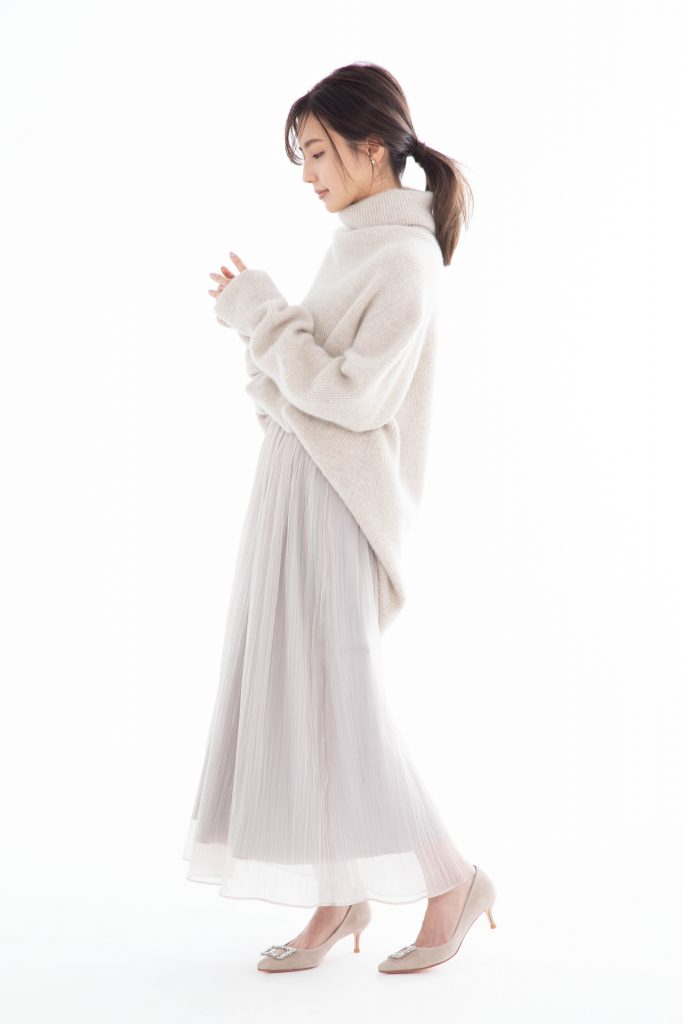 【衣装】ニット¥38,000(バトナー/デミルクス ビームス 新宿)スカート¥15,000(RAW FUDGE/ピーチ)ピアス¥45,000リング¥90,000(ともにカラットアー/イセタンサローネ 東京ミッドタウン)パンプス¥27,000(ツル バイ マリコ オイカワ)