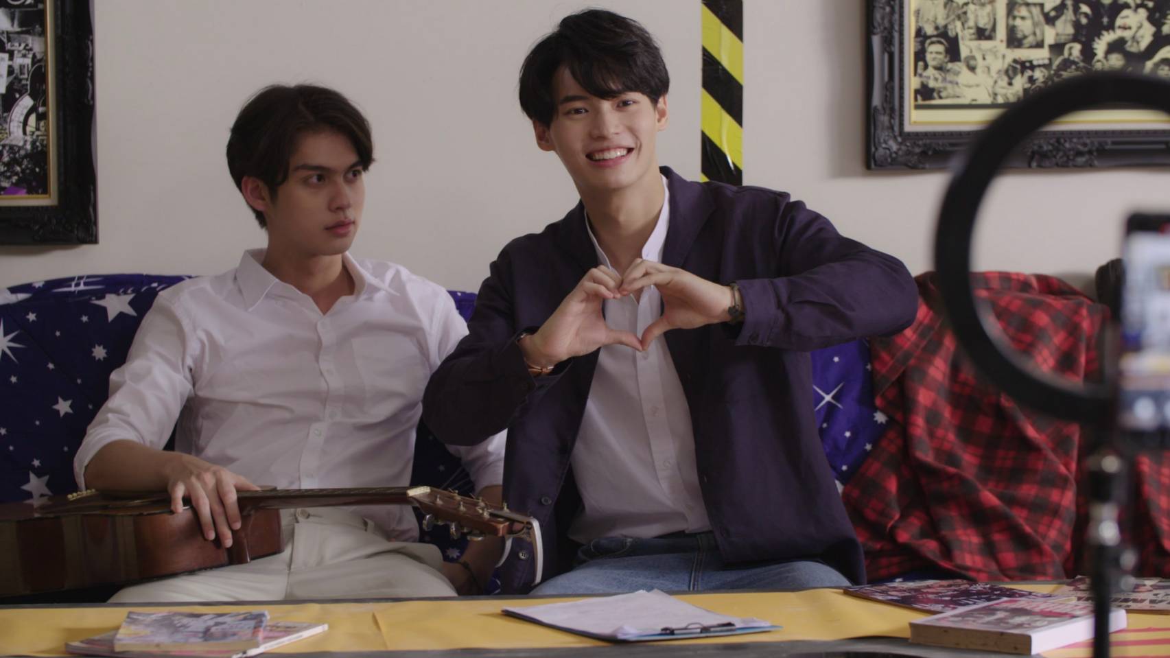 ある朝は、「洗顔まだだろ」とサラワットがタインの顔に洗顔クリームを塗り、「歯磨きは?」とタインが歯磨き粉まみれの口でサラワットの首筋にキスすると、「そこは首だ」とサラワット……。また別の日は、なかなか就寝しないタインに「寝るか、落ちるまでキスするか」とサラワットが言うと、「一年以上それを聞いてるけどまだ落ちたことがない」と挑発するタイン。こんな感じでイチャつきまくる日常が繰り広げられています。タインがシャワーを浴びに行きながら「スクラブか、 俺の背中をスクラブするか選んで」とサラワットを挑発するシーンも。バンド「Scrubb」はカップルのダシにされていいのでしょうか……とちょっと心配になりますが、写真を見る限り良い人そうで、多分許してくれそうです。後半、道の反対側で離れながらも顔だけでイチャつくシーンも見どころです。2人のラブラブシーンはアドリブも入っていそうで、どこがアドリブか想像するのも楽しいです。キスの後の驚きの表情がポイント。