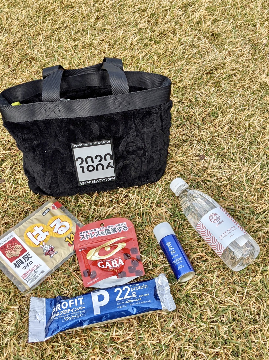 冬は乾燥が気になるので、「雪肌精」のミスト化粧水が必須。常に水分を肌に与えながら、風による乾燥やホコリなどを抑える努力を。着膨れするとクラブが振りにくいので、貼るカイロはマストアイテム。寒さに合わせてたくさん貼るので、常に予備を数枚入れてあります。さらに、水分補給をしっかりして運動効率をあげるシリカ水や、カロリーが低いチョコ。ストレスを軽減してくれる甘いおやつでいいスコアを狙います。また、小腹空き対策や朝ご飯などにプロテインバーを所持。ささみソーセージみたいなものを、味を変えながらバッグに忍ばせておくことも。