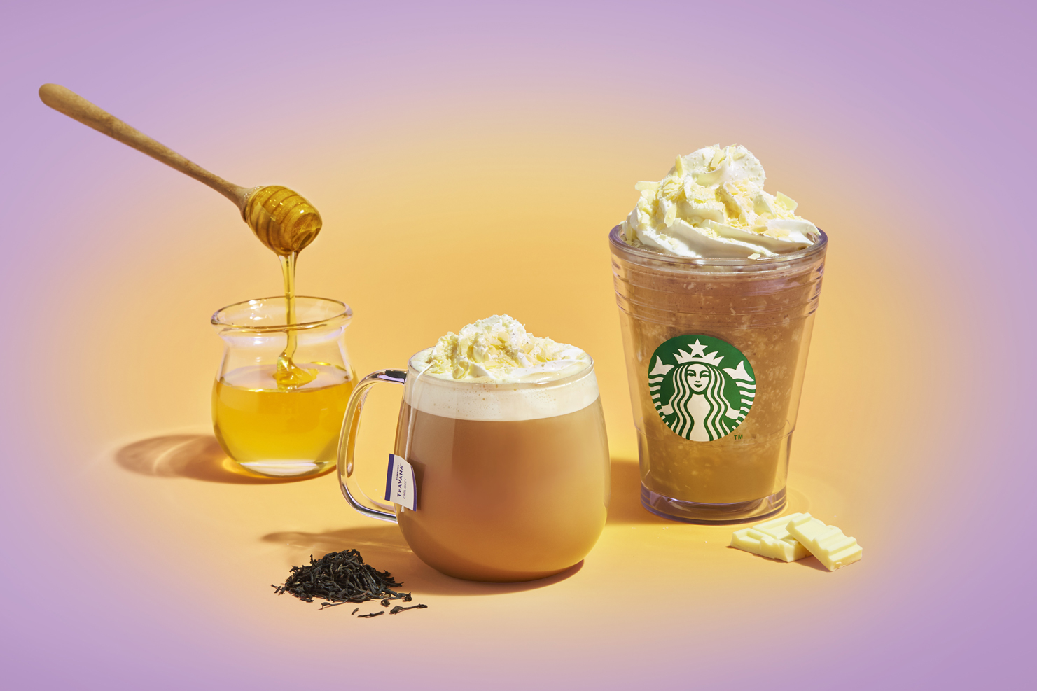 ホットドリンクには「アール グレイ ハニー ホイップ ティー ラテ」だけでなく2種類の期間限定メニューもラインアップ。