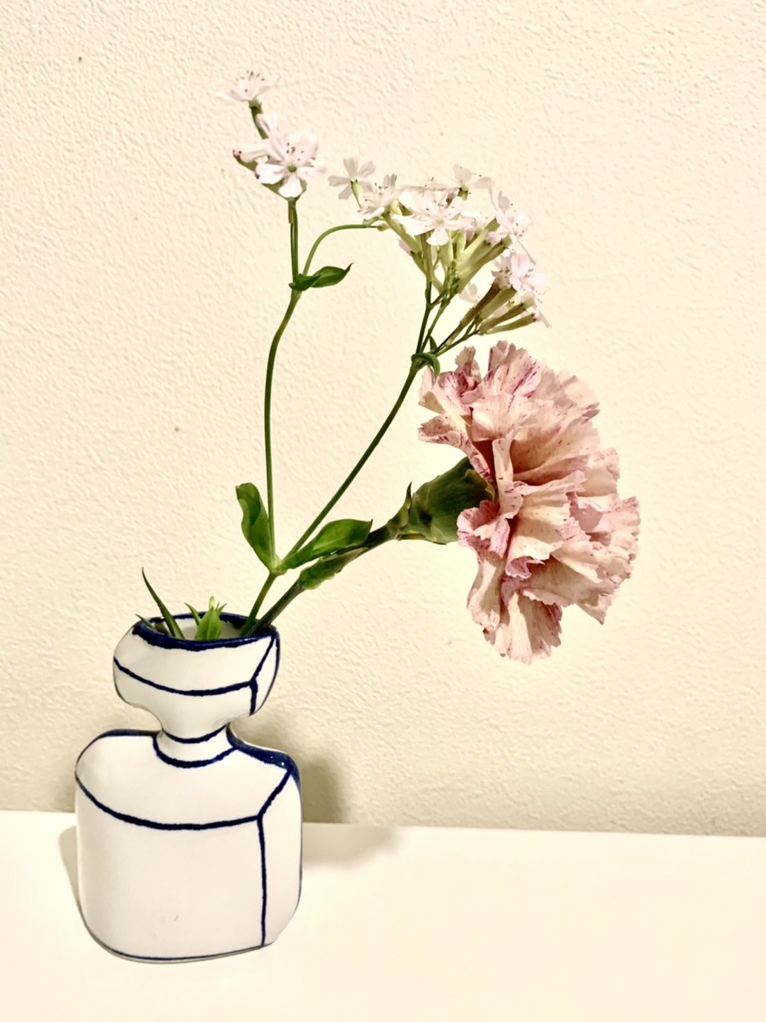 「スウェーデンの陶磁器ブランド『マリアンヌ・ハルバーグ』が、瀬戸焼バージョンで登場。ずっと欲しいと思っていた、代表作『香水瓶のかびん』をやっと手に入れました…! トリックアートのような立体感のある佇まいと、花一輪だけでも絵になるところが素敵です」