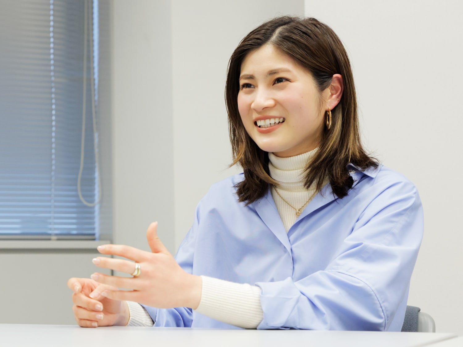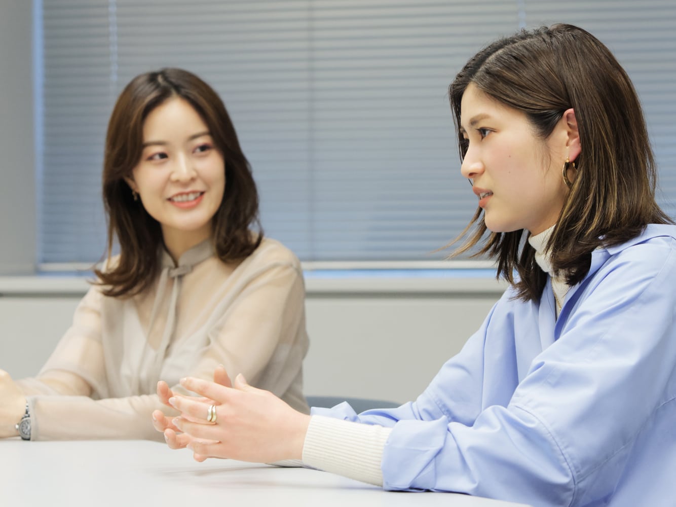 黒島:「妊娠とか出産については、いくらプランを考えても現実に起こらないとリアルに考えられない部分ってあるよね。私はもともと海外の部署で働きたいと思っていたから、その後かなと漠然と考えてたな。でもジョブローテーションを経て、今、ここがタイミングなのかもと最近思ってる。自分に余裕も持てるようになったし、このタイミングを逃すとまた仕事に没頭しちゃいそう(笑)」
