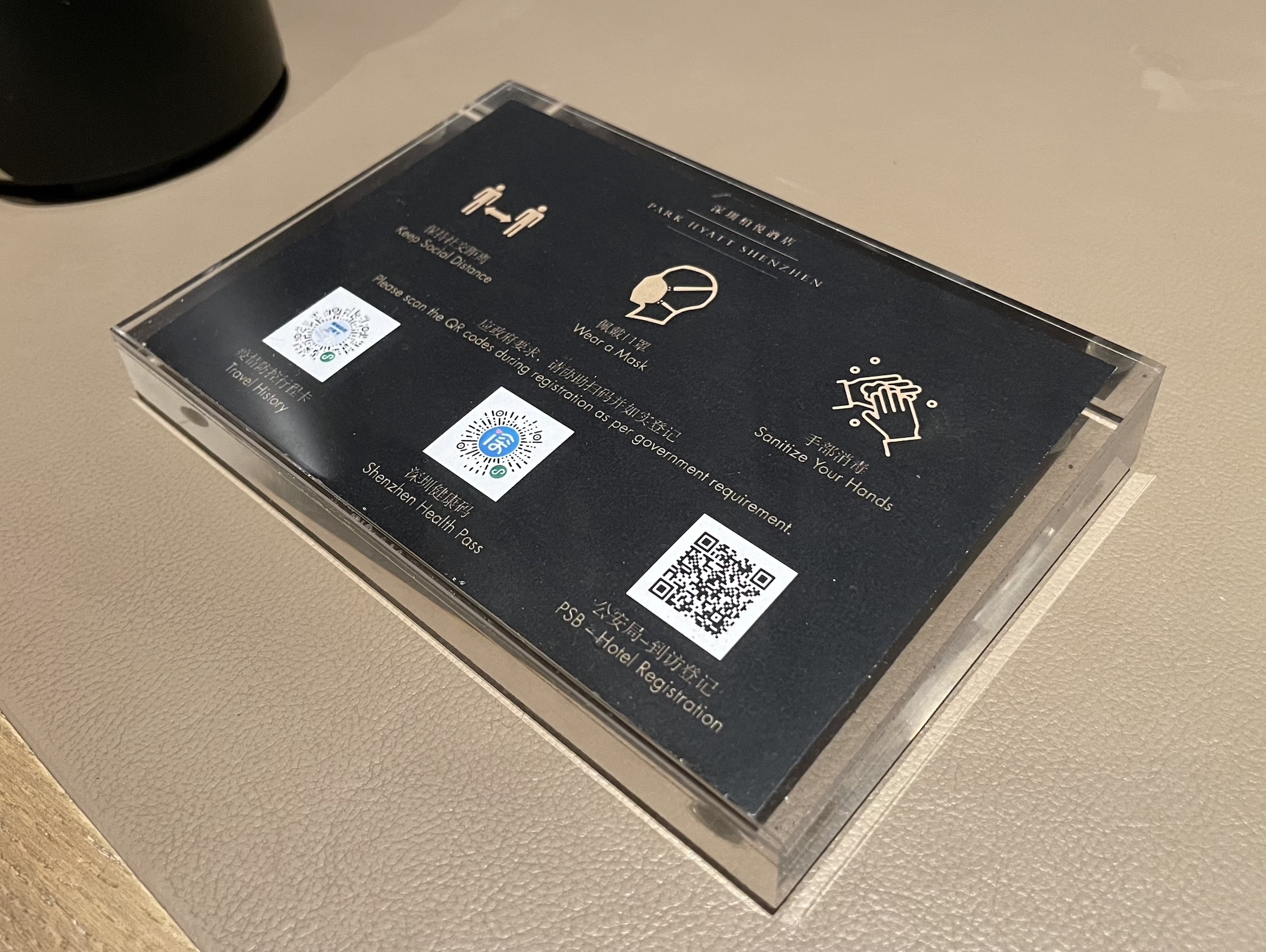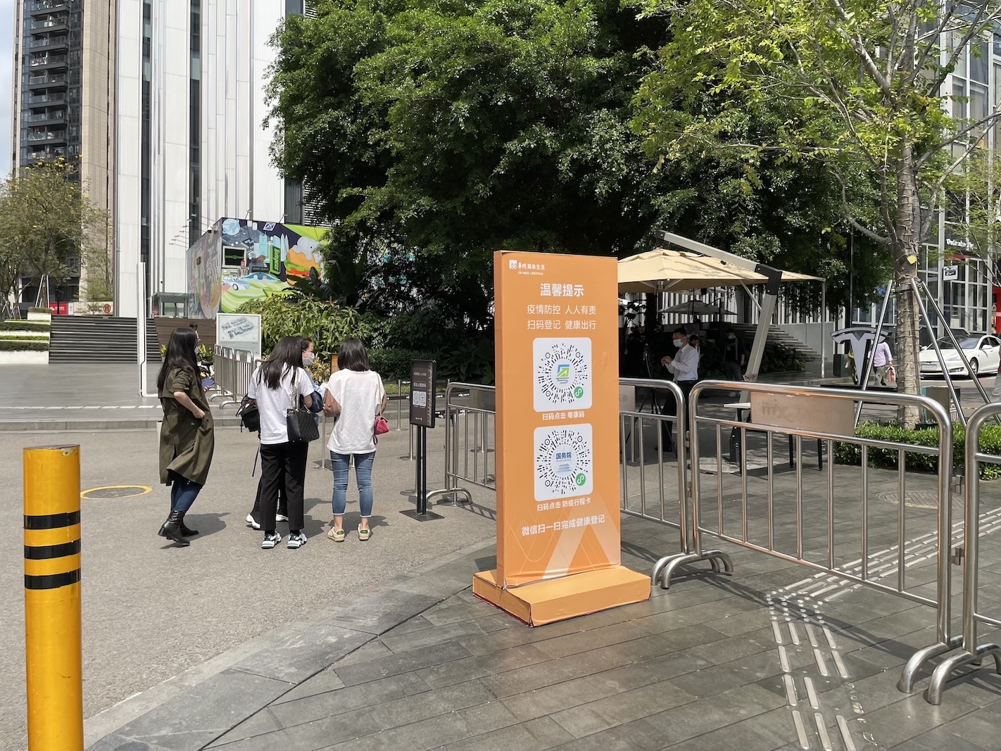 都市ごとに健康コードが必要なので、商業施設やホテルの入り口には登録するためのQRコードも設置してあります。